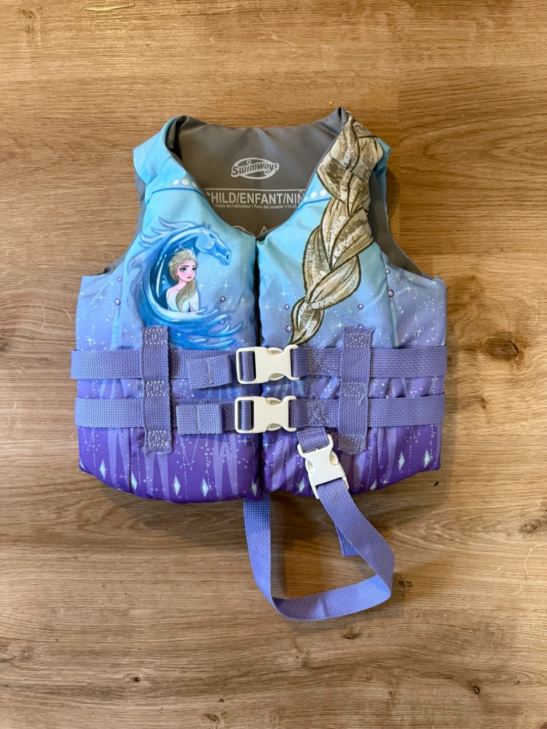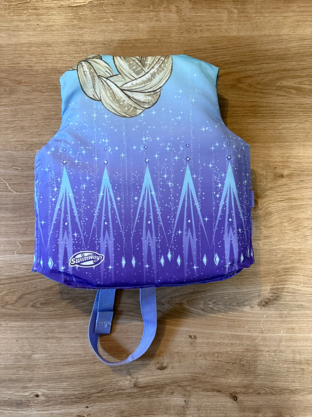 60Swimways frozen life jacket with Elsa. Only used a couple times. There is a small stain on the inside side panel.