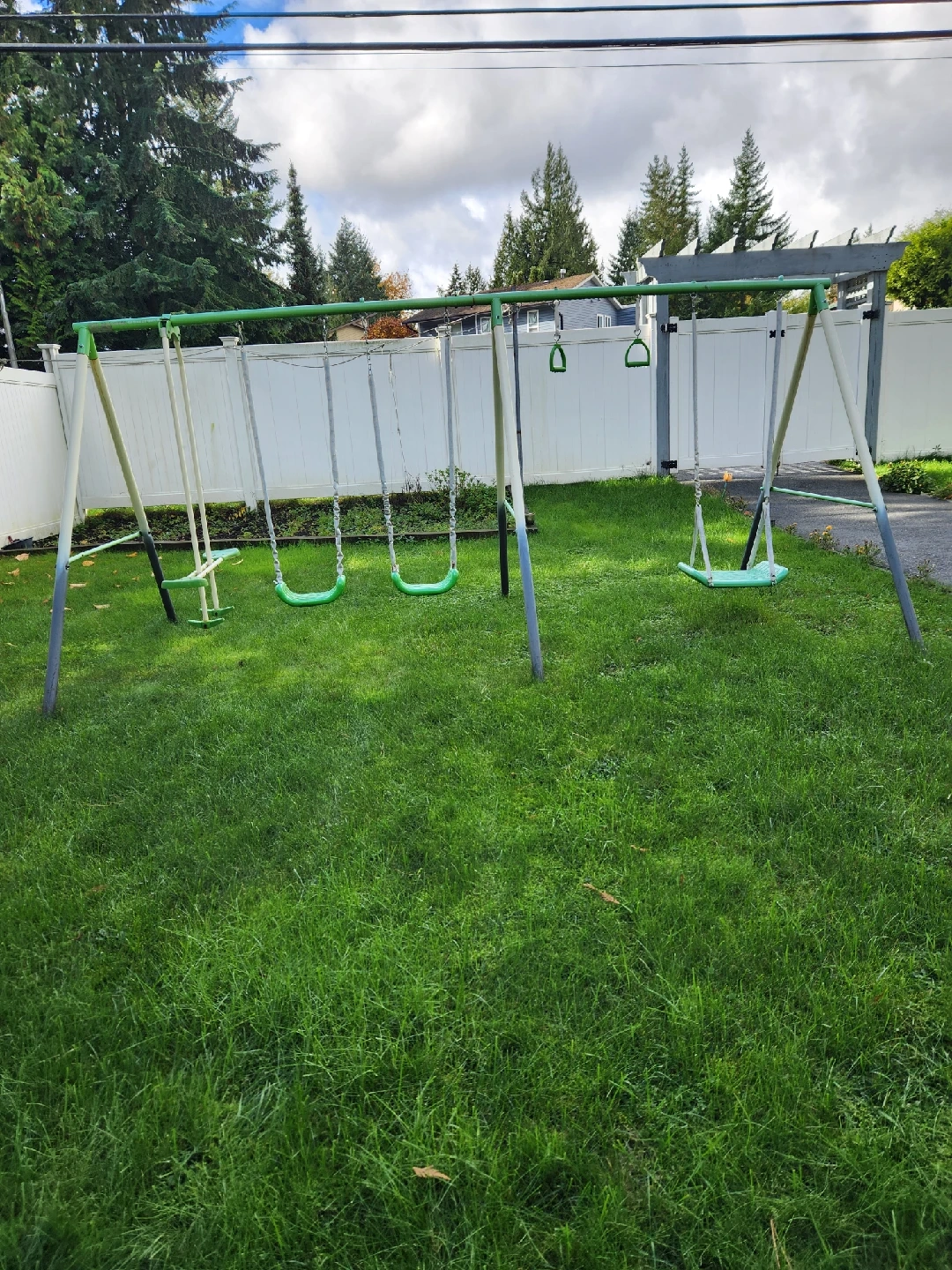 60Kids swing set has slide (not shown). Good Condition