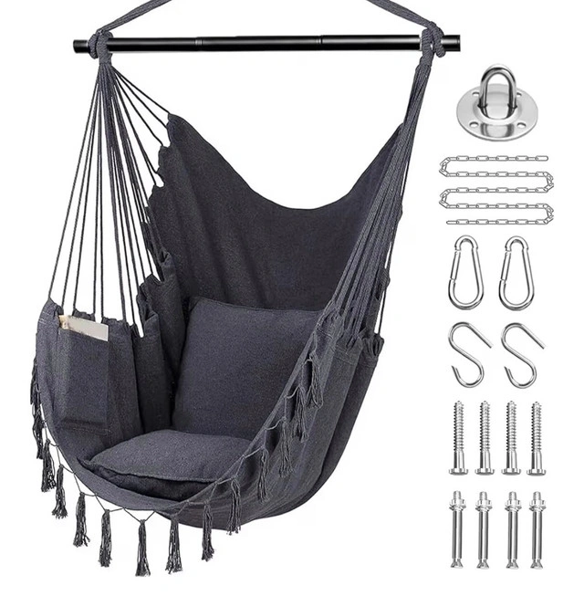 74Indulge in relaxation with this gently swaying chair, complete with a convenient side pocket and ceiling hook for easy setup. This chair is in used, but very good condition, ready to bring a peaceful retreat to your home. Here are some of its features: * Comfortable and supportive design * Durable construction * Includes ceiling hook for easy installation * Handy side pocket for books or devices This swinging chair offers a cozy escape from the everyday hustle. If the ad's still up, you bet it's still available!
