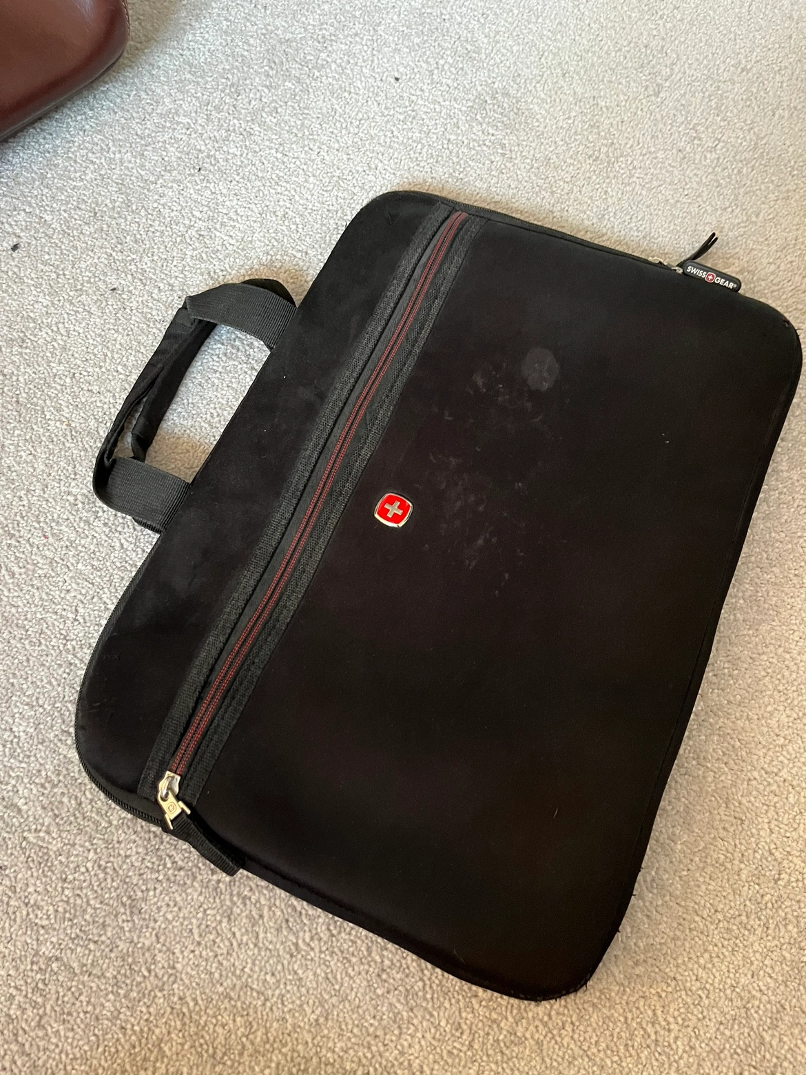 79Black laptop case with SwissGear logo. Has a handle and zipper. As is, fits 15 inch laptop.