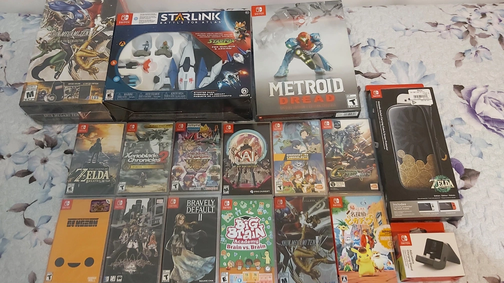 97Switch Games Buy 3 get $10 off Pickup Midland and ellesmere, all Games available while listed Games listed Below are available $30 Each Detective Pikachu Yugioh Brand New Digimon Cyber Sleuth Brand New Starlink Collectors edition Brand New Big Brain Academy $40 Shin Megami Tensei Steelbook Edition $50 Bravely Default Brand New Enter the Gungeon Brand New SD Gundam Undernauts Brand New Ai the Somonium Files $60 Each Zelda Breath of the Wild Brand New The World Ends with You Brand New $70 Xenoblade Chronicles 2 Golden Torna Brand New $120 each Shin Megami Tensei Collectors Edition Brandkk New Metroid Dread Collectors Edition Brand New Switch Case $10 Switch Stand $20