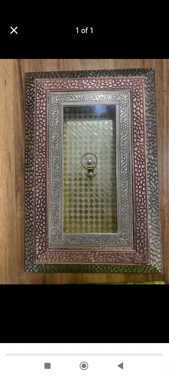 This decorative box features an ornate embossed design with metallic accents in silver and rose gold. It has a hinged lid with a pull ring closure. Perfect for storing small keepsakes or jewellery!