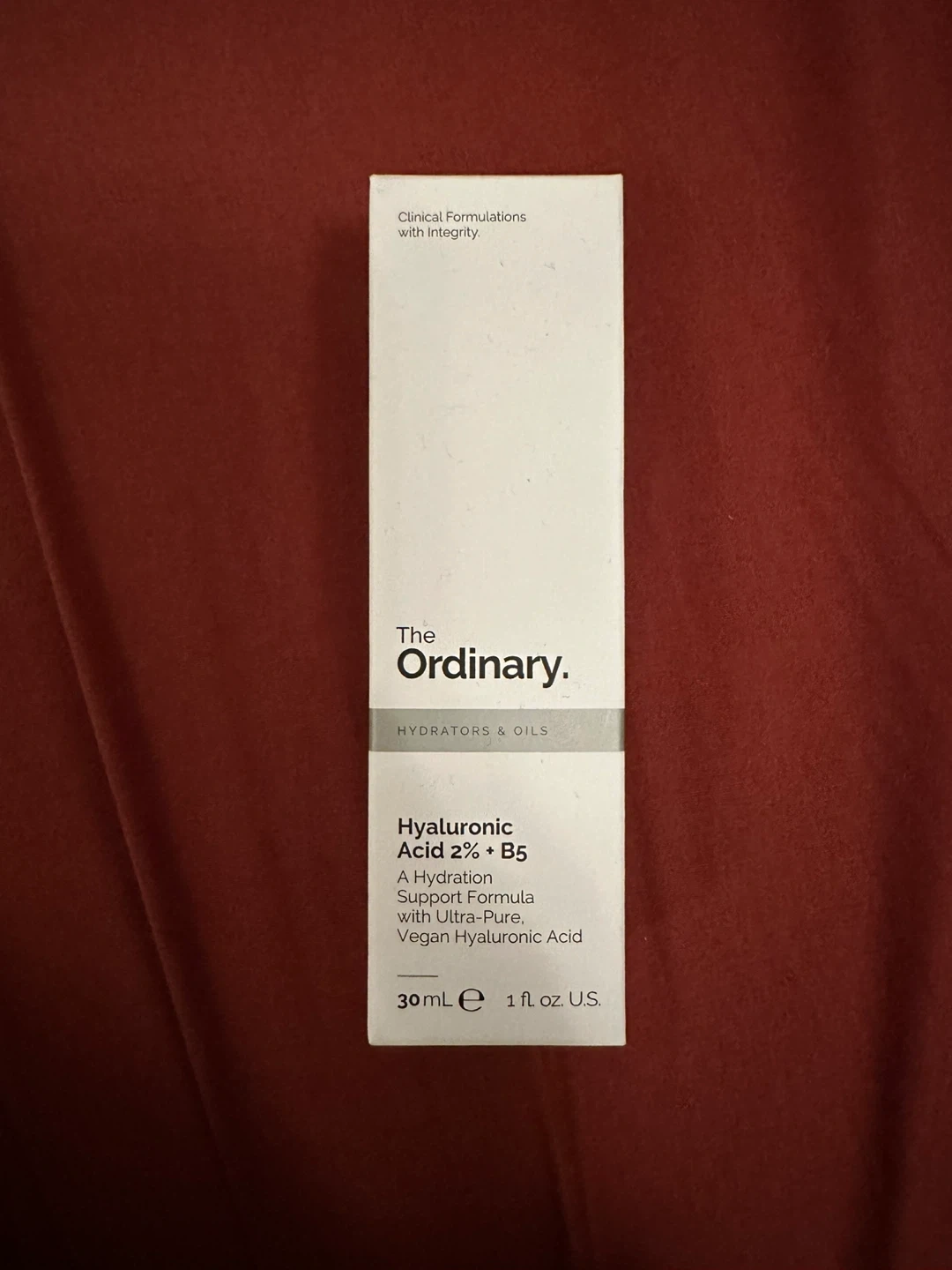 This is The Ordinary Hyaluronic Acid 2% + B5 serum. It's a hydration support formula with ultra-pure, vegan hyaluronic acid. The serum comes in a 30ml bottle.