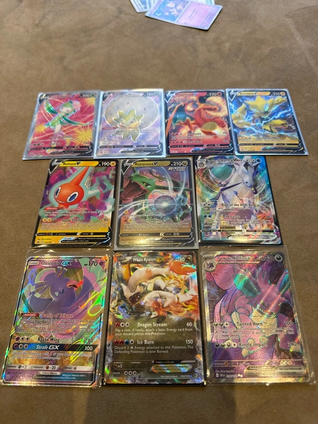These are some near mint condition Pokemon cards that I'm looking to sell. Take a look, maybe you'll find a gem or two! I've had these cards for a while, and I figured it's time to pass them on to someone who can appreciate them as much as I have. They're looking for a new home! If the ad is still up, then yes, it's still available! Cash accepted.