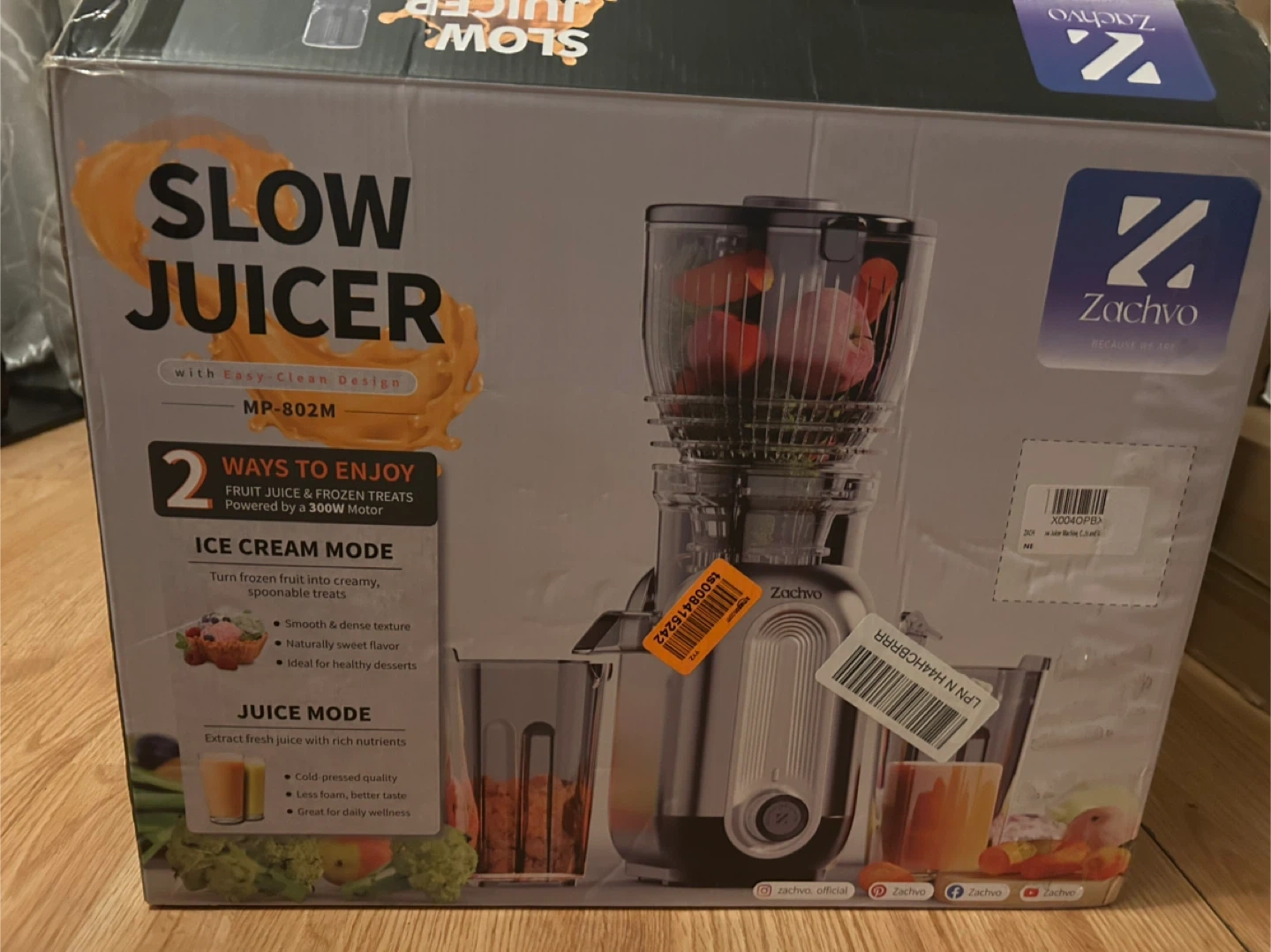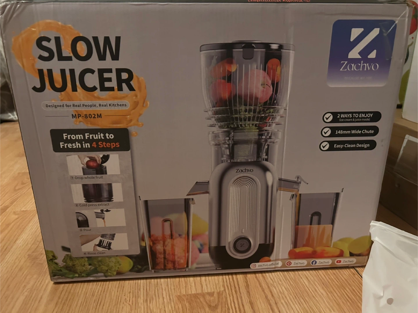 Zachvo Slow Juicer MP-802M with 148mm Chute