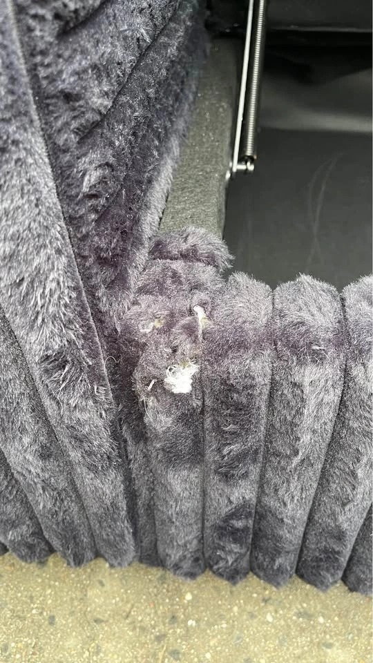 The couch does have some tears that are barely noticeable. Check the photos. Also, comes from a home with a smoker so it has odor. Overall, the couch is still in good condition. It comes with charging ports and the middle headrest comes down into a table with 2 cup holders.