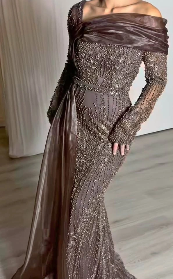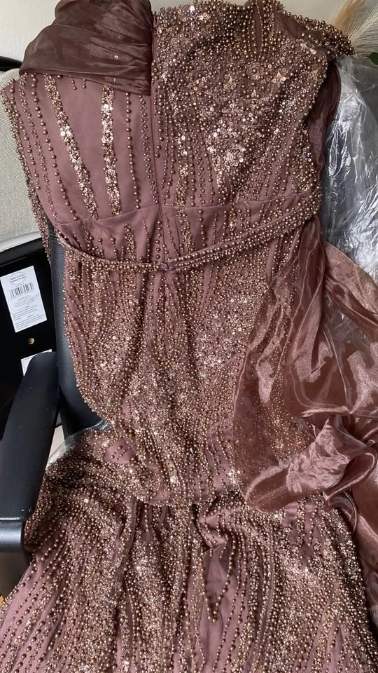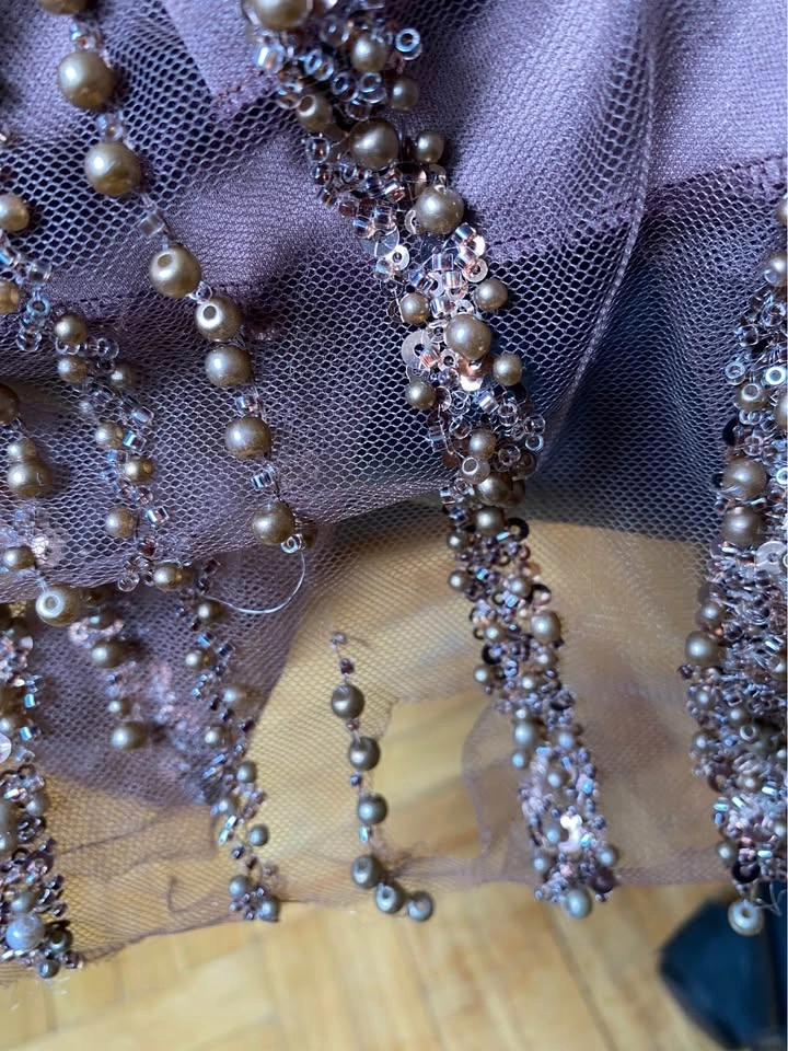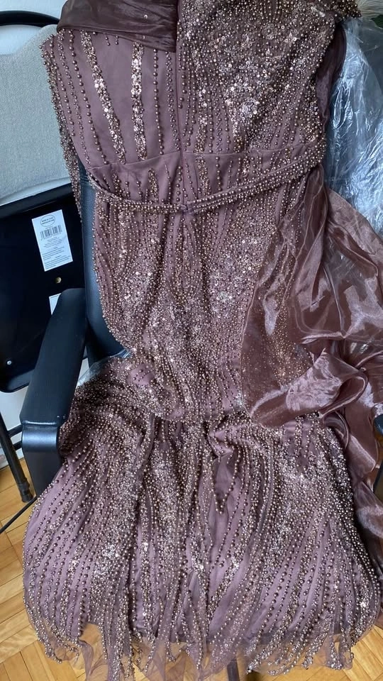 Lora dress in chocolate brown. Size 44 Elegant Beaded Sequin Off
