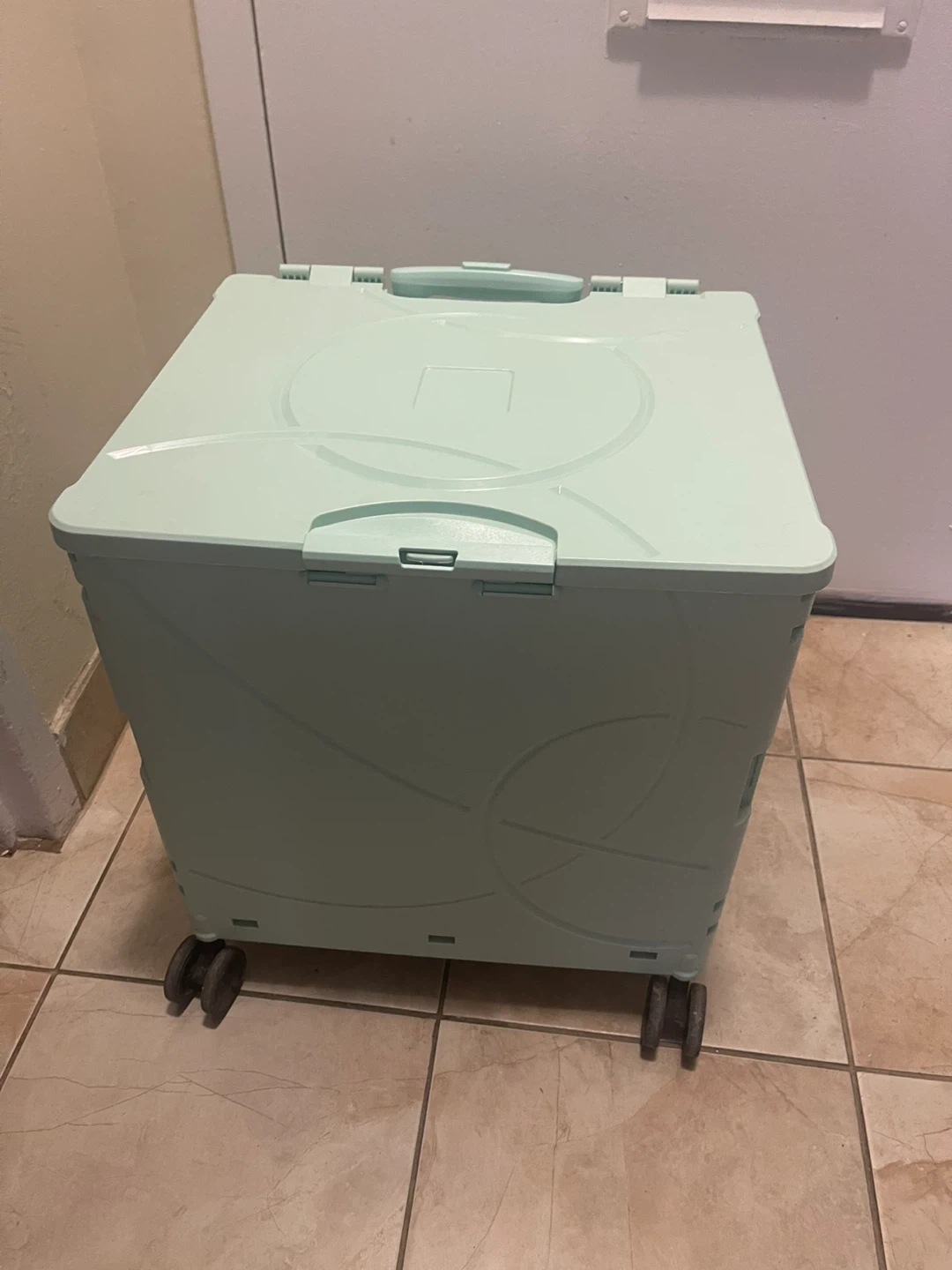 Mint Green Collapsible Rolling Storage Cart