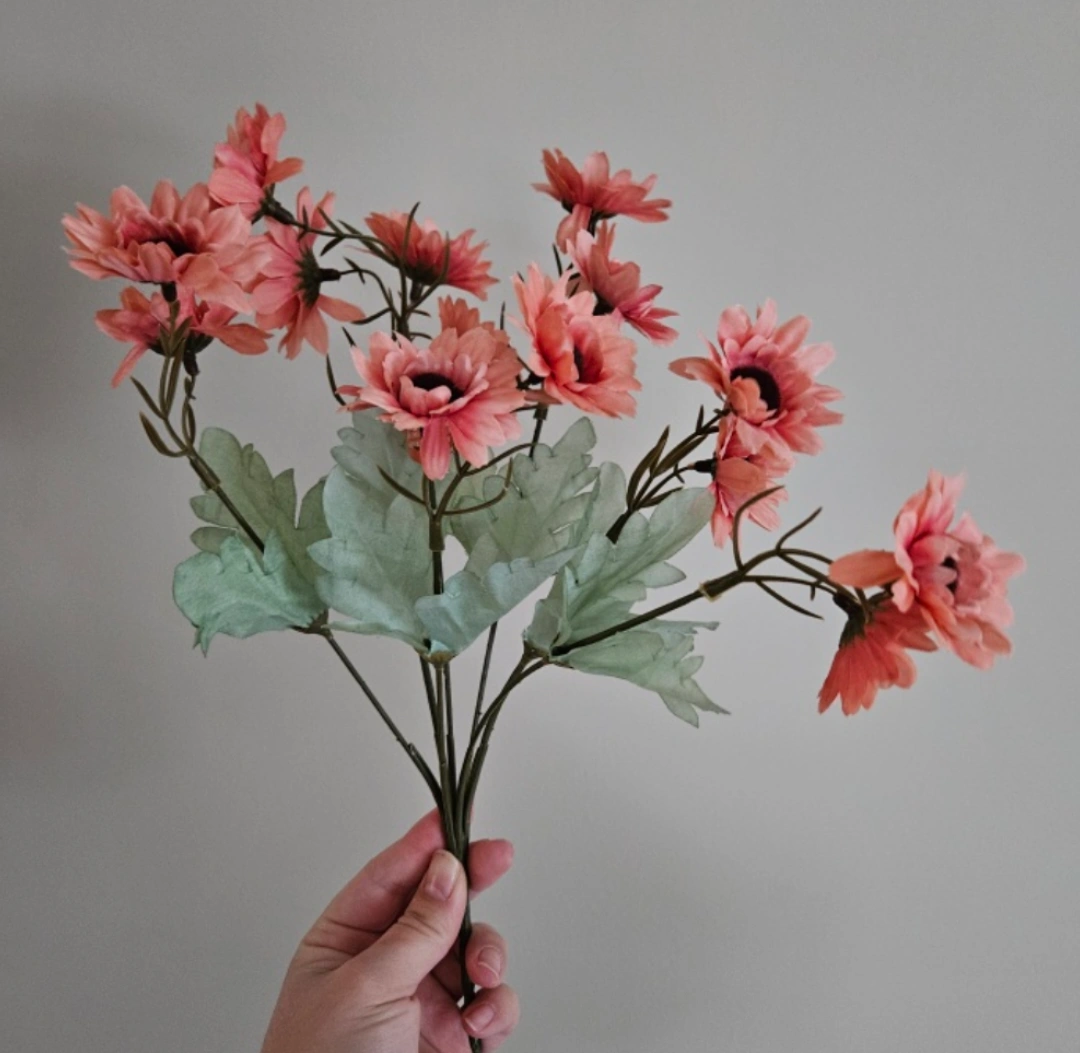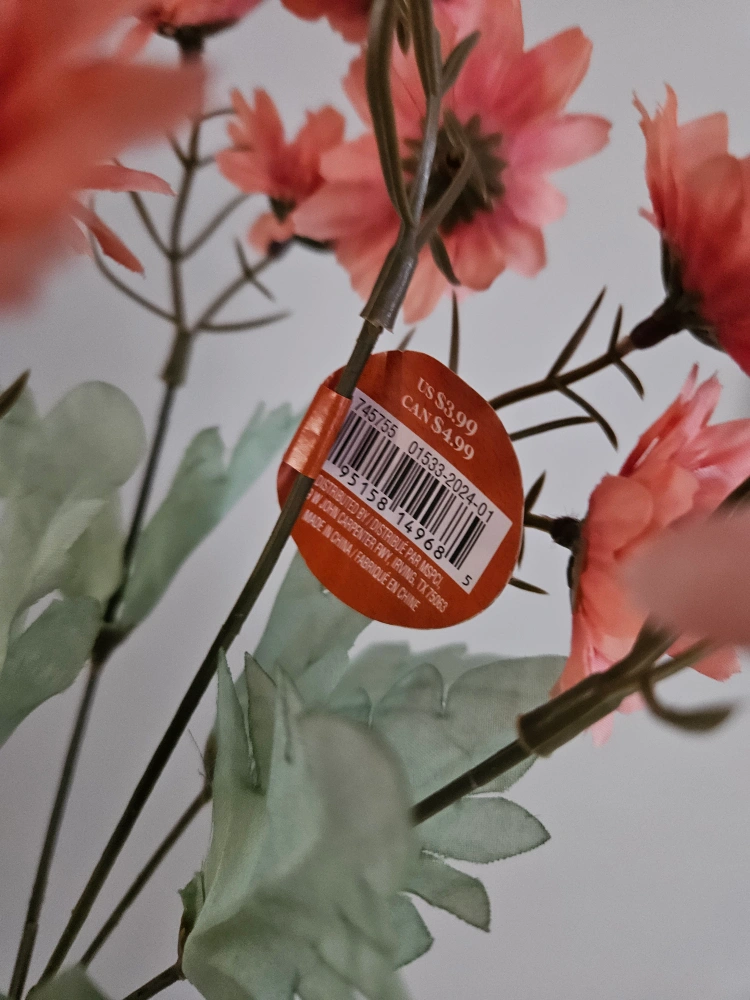 Artificial flower arrangement. Coral/peach coloured flowers. Green leaves. Perfect for home décor. New with tag. Will be happy to give it away for free with any other of my (paid) listings.