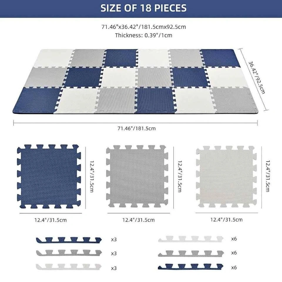 Baby Play Mat, 0.39" Thin 18 pcs Puzzle