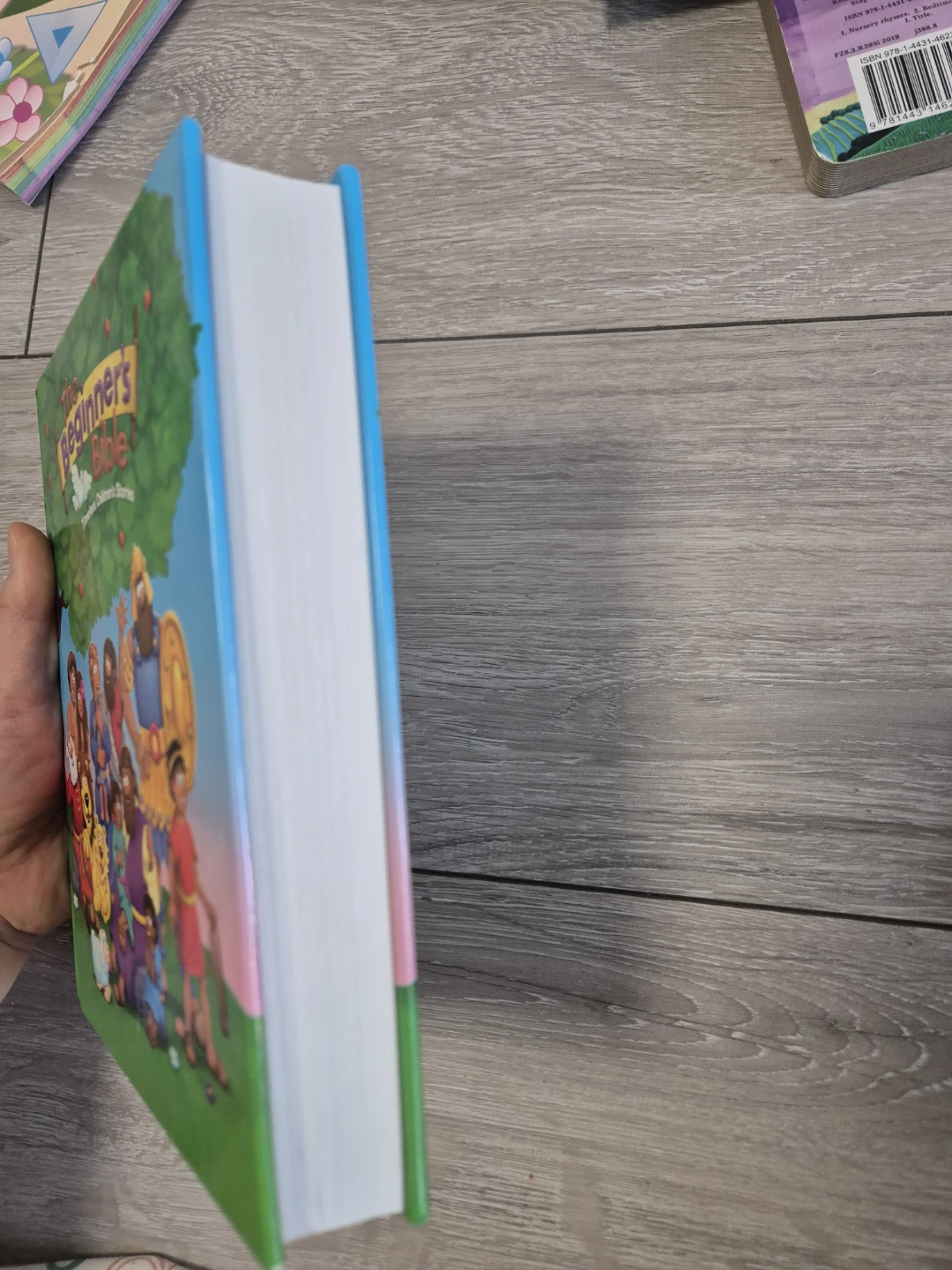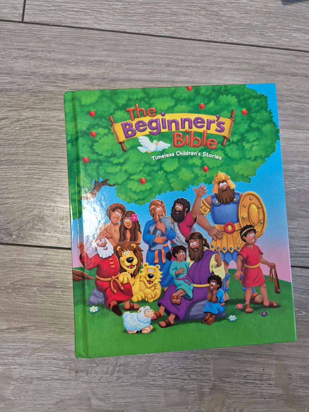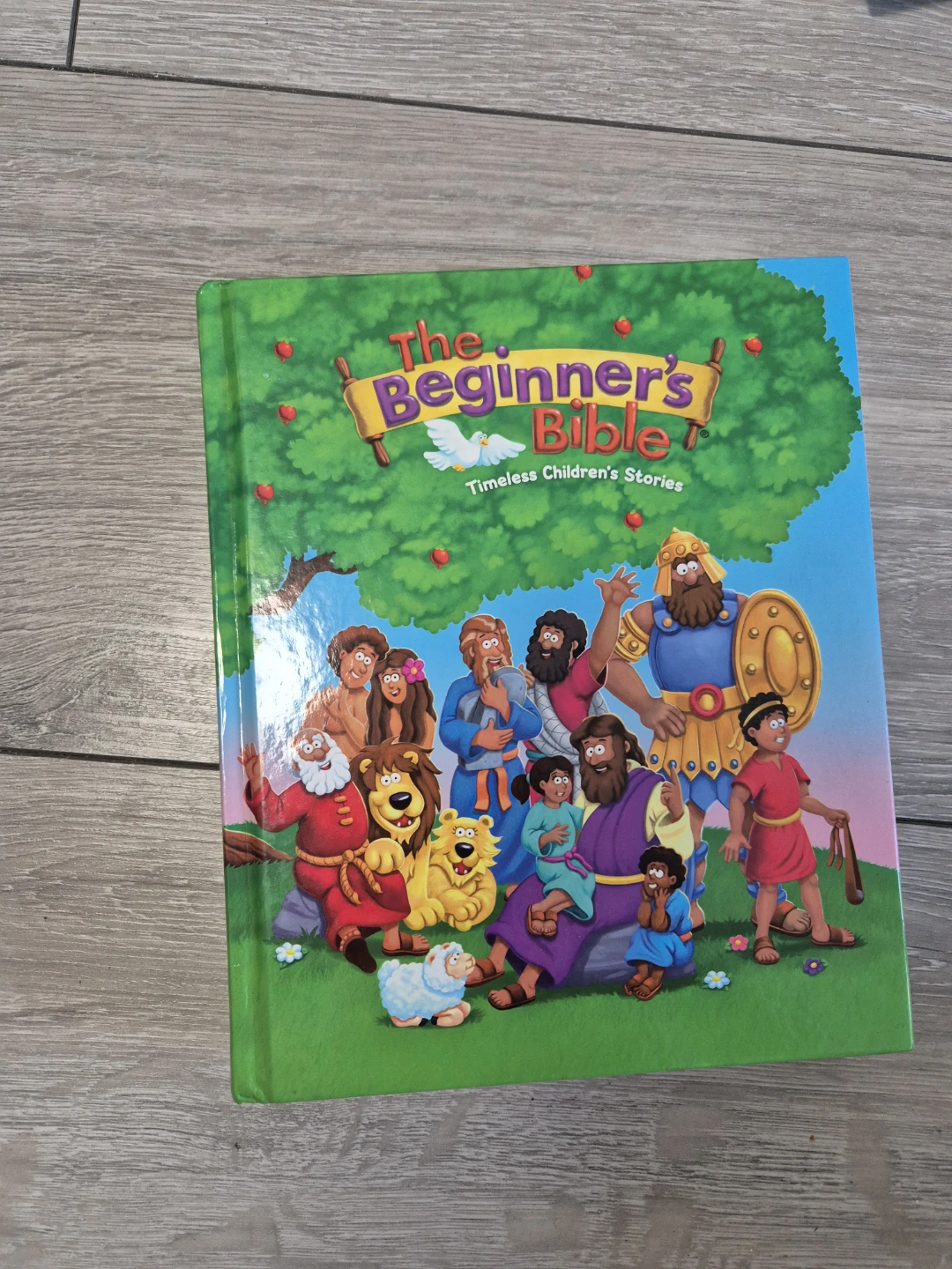 This is The Beginner's Bible, featuring timeless children's stories. It's designed for young readers. The book contains many colourful illustrations.