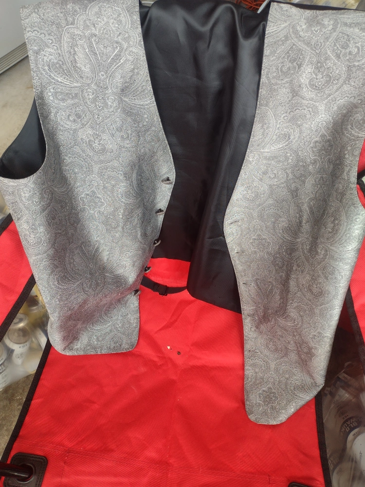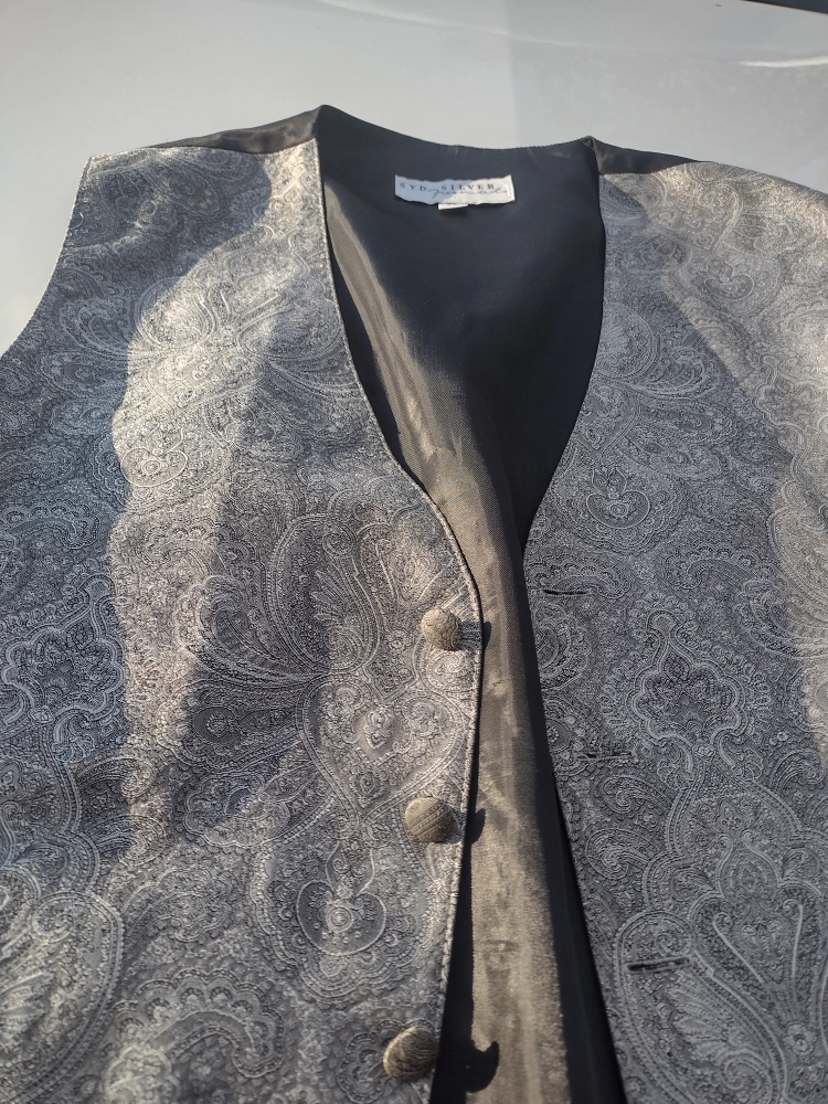 Selling a Syd Silver vest in size XXL. It features a paisley pattern in shades of grey and black. Perfect for adding a touch of class to any outfit!
