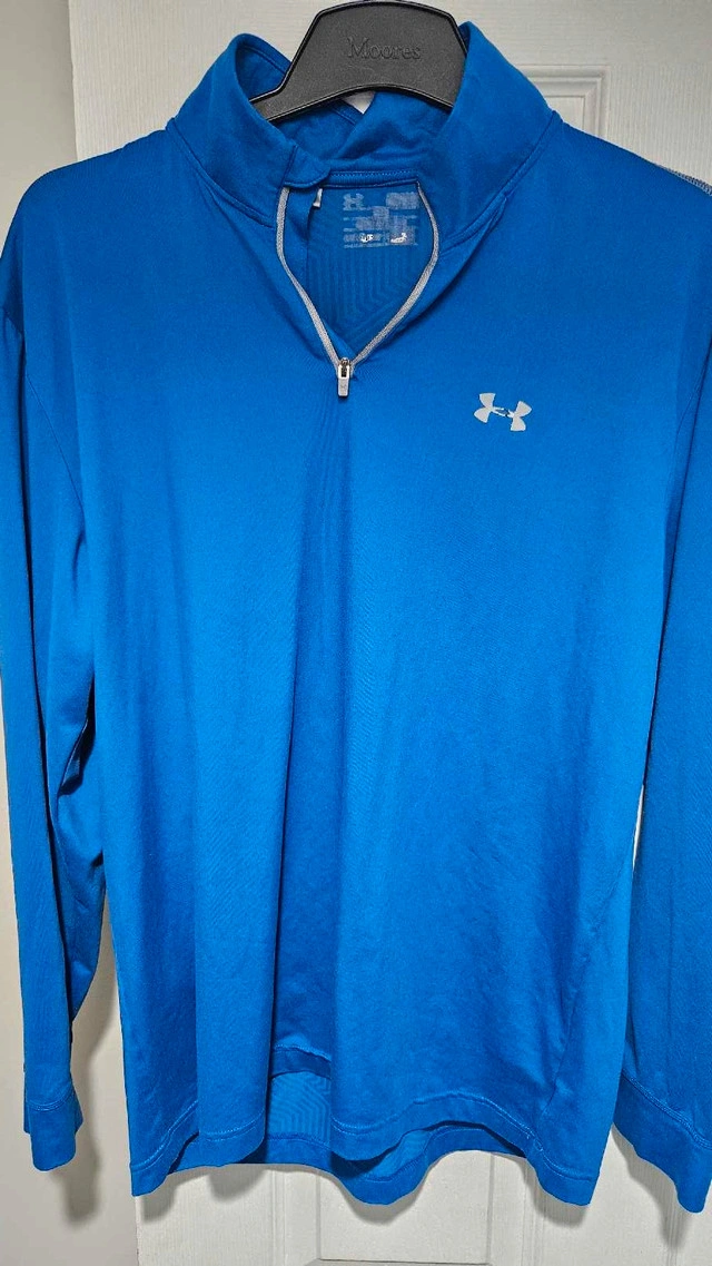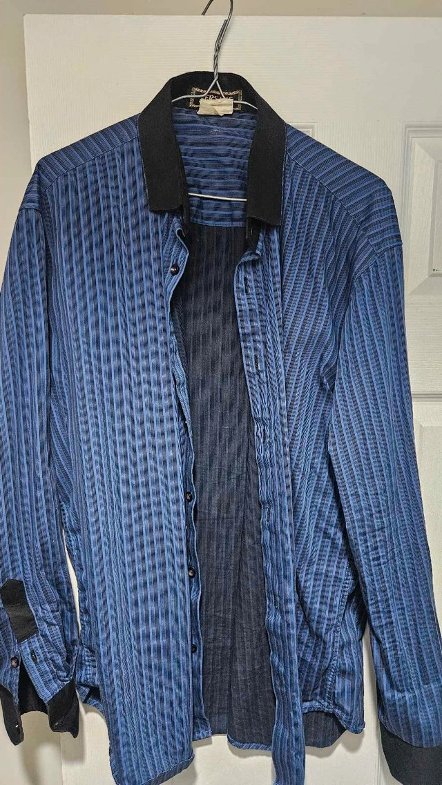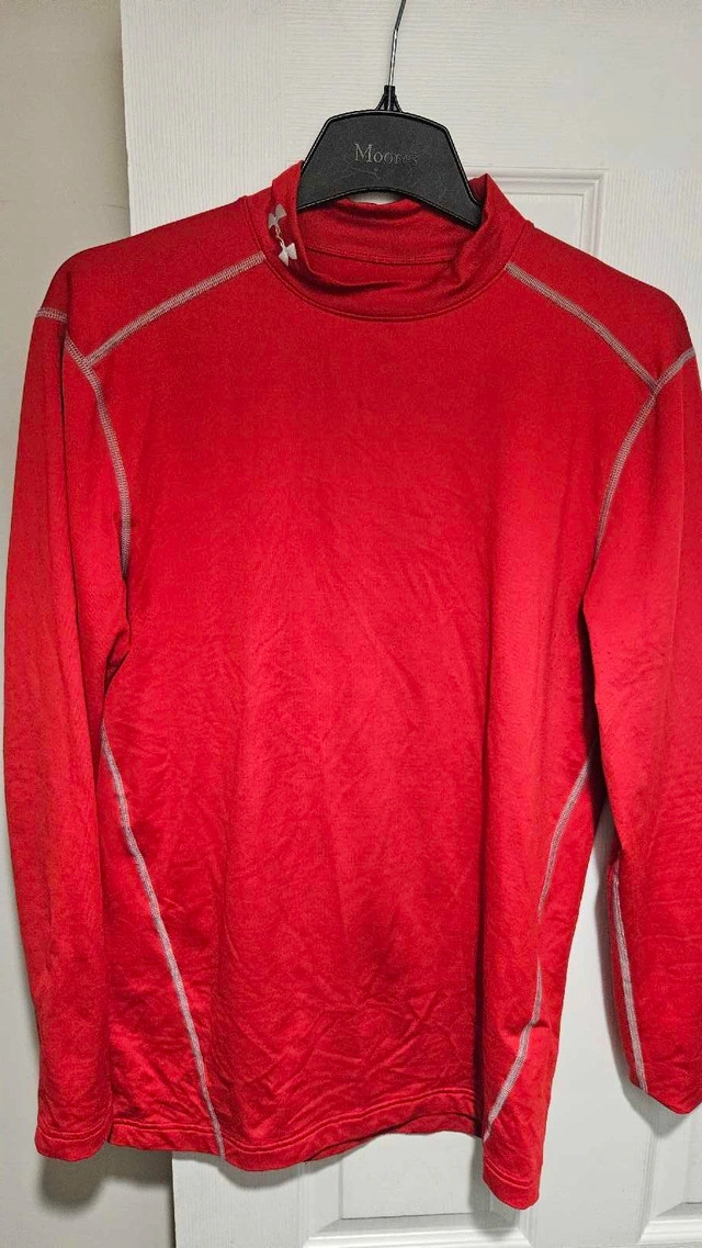 This listing features a collection of men's shirts and Under Armour cold gear, all in size L. The shirts vary in style and brand, while the Under Armour cold gear is designed to keep you warm during colder weather conditions. These items are in used condition, please see photos for condition details. Size: L nd xl. If the ad is up, it's available!