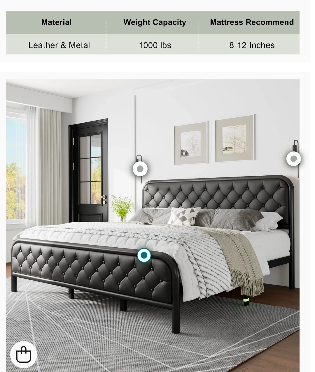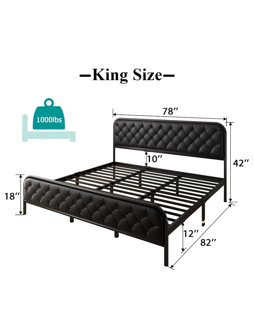 ✨️ King Size Platform Bed Frame - Sleek Black Faux Leather✨️