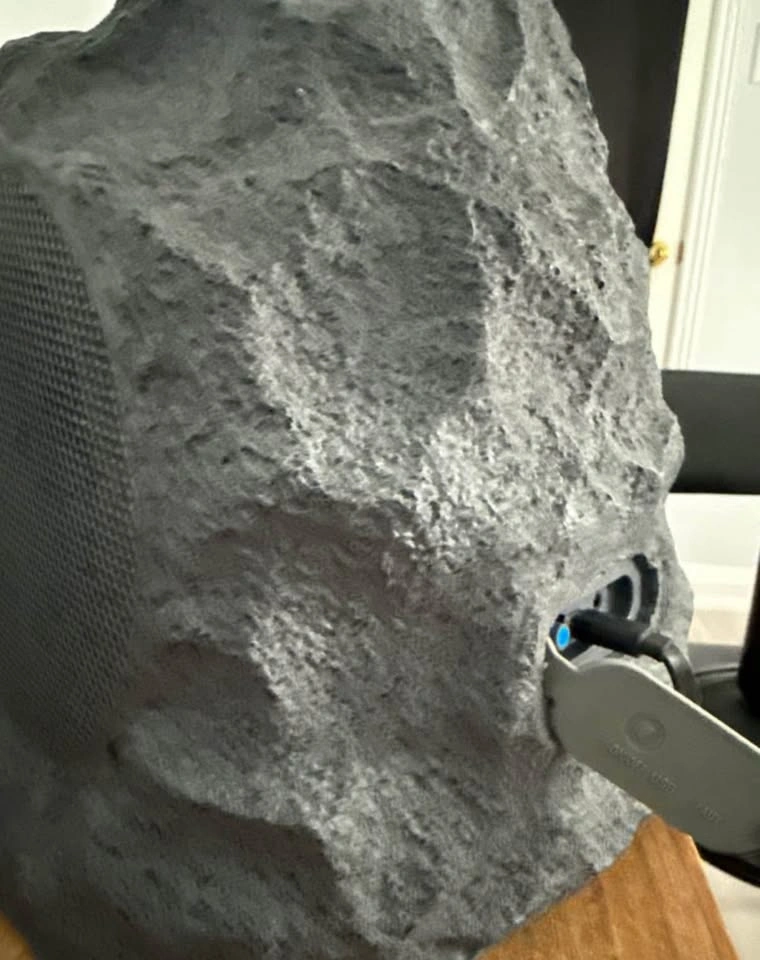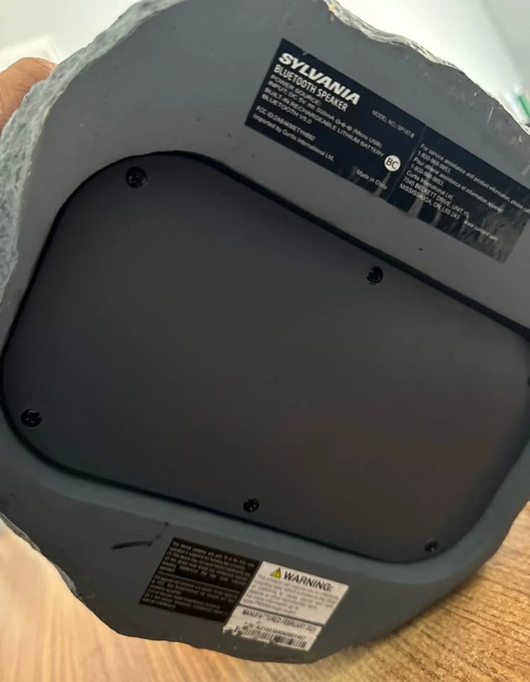 108Enjoy tunes outdoors with this used Sylvania Bluetooth Speaker, styled to blend in with your garden decor. This rock-look speaker delivers surprisingly robust sound and a touch of whimsy to your patio or garden. Key features: - Bluetooth connectivity for wireless streaming. - Weather-resistant design, perfect for outdoor use. - Rock-like appearance to blend seamlessly into outdoor settings.