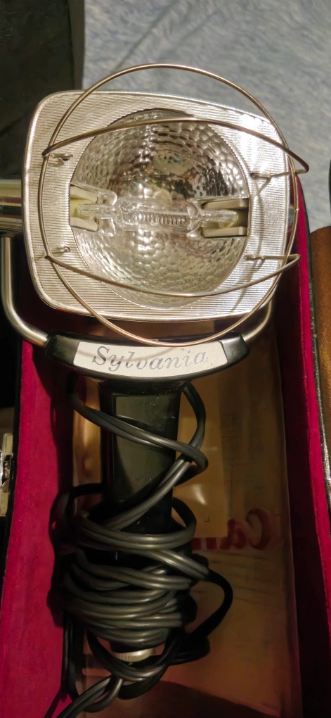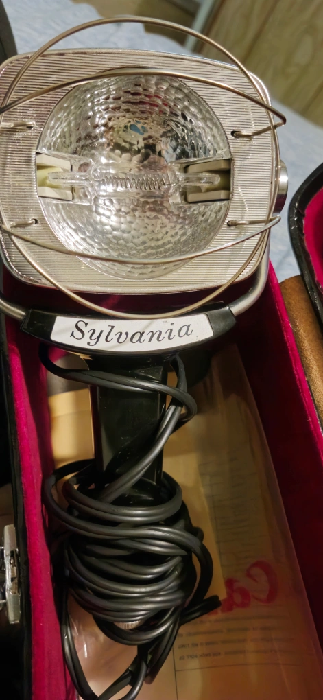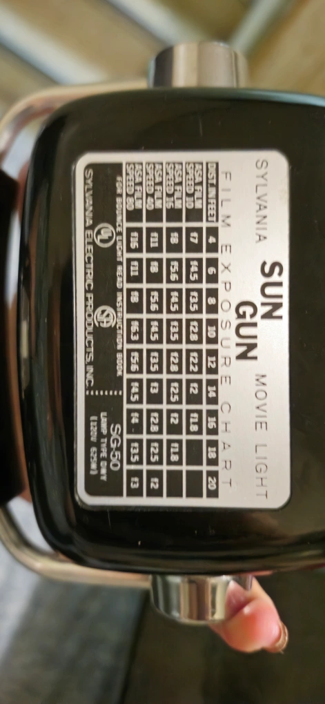 Selling a vintage Sylvania Sun Gun Movie Light, model SG-50. This is a classic piece of film equipment. It comes with its original case and some paperwork. Great for collectors or anyone interested in vintage film lighting!