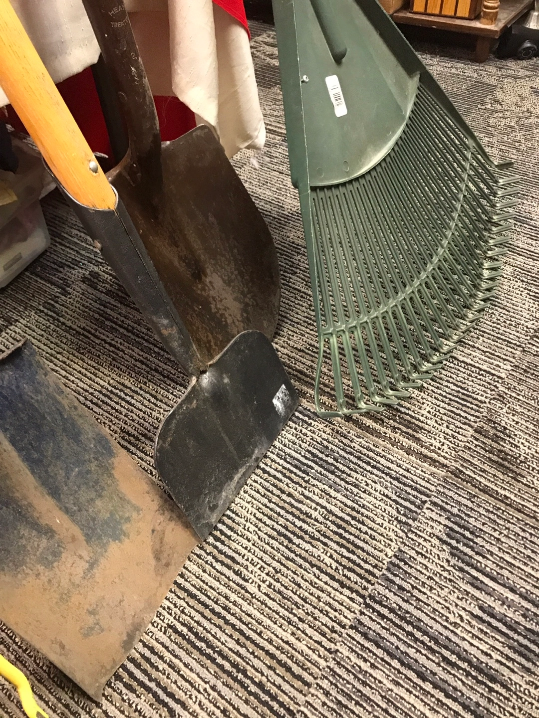 This set includes various gardening tools for digging, raking, and cultivating. It features two shovels, a garden rake, a hoe, and a hand cultivator. These tools are ready for your next outdoor project! All for $75.00