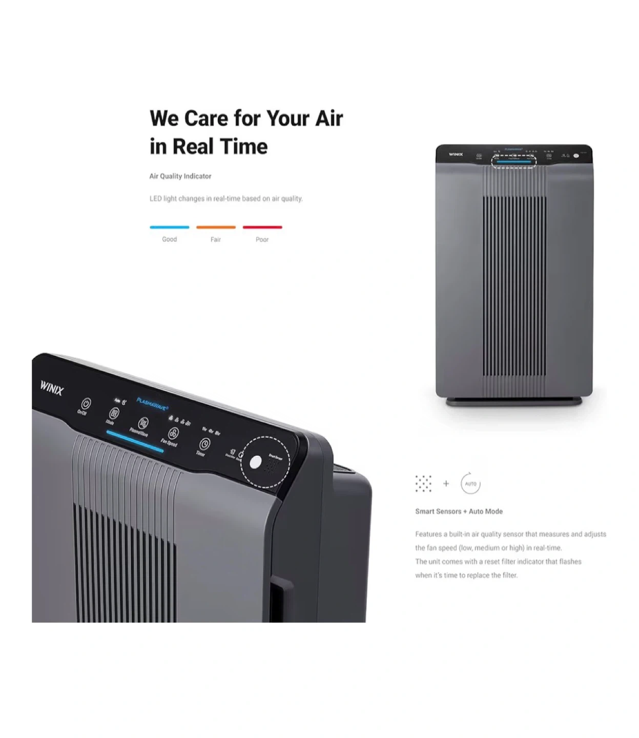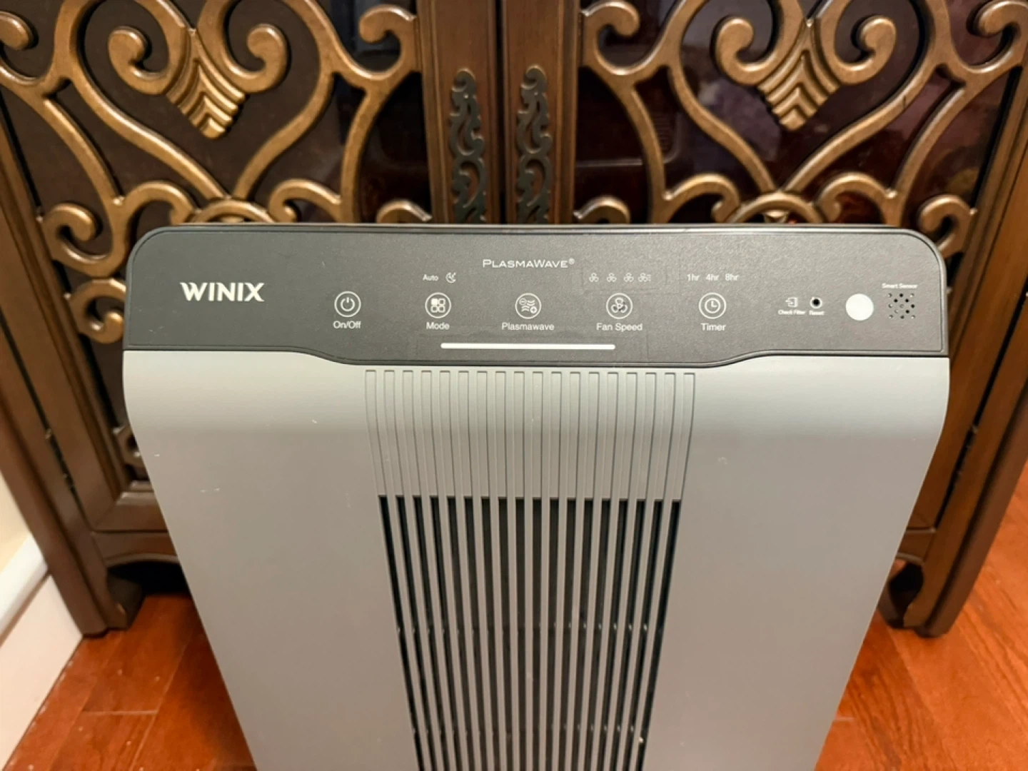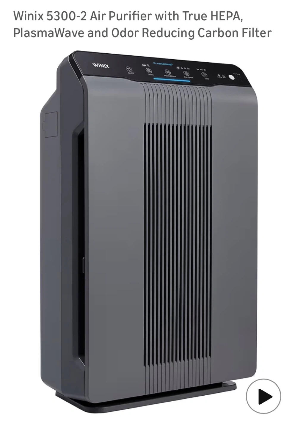 This Winix 5300-2 air purifier features a True HEPA filter, PlasmaWave technology, and an odor-reducing carbon filter.
