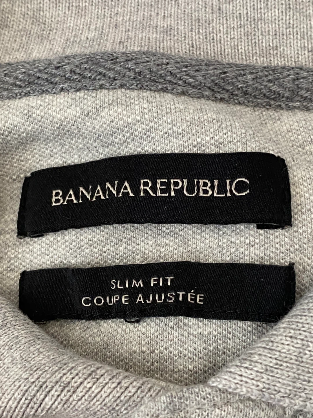 Two Banana Republic polo shirts included, one red and one grey. Both are a slim fit style and size medium. They're made with a comfortable cotton blend. Gray shirt has had the size tag cut off.