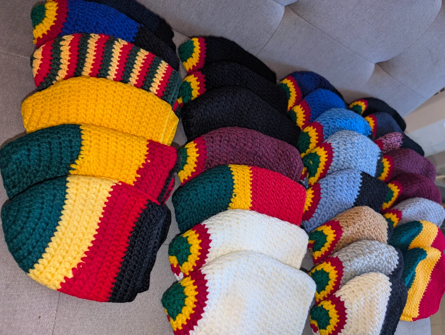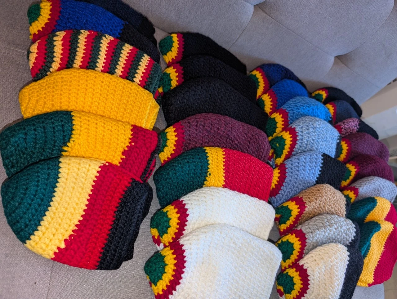 Crocheted Beanies - Rasta Colours and Solid