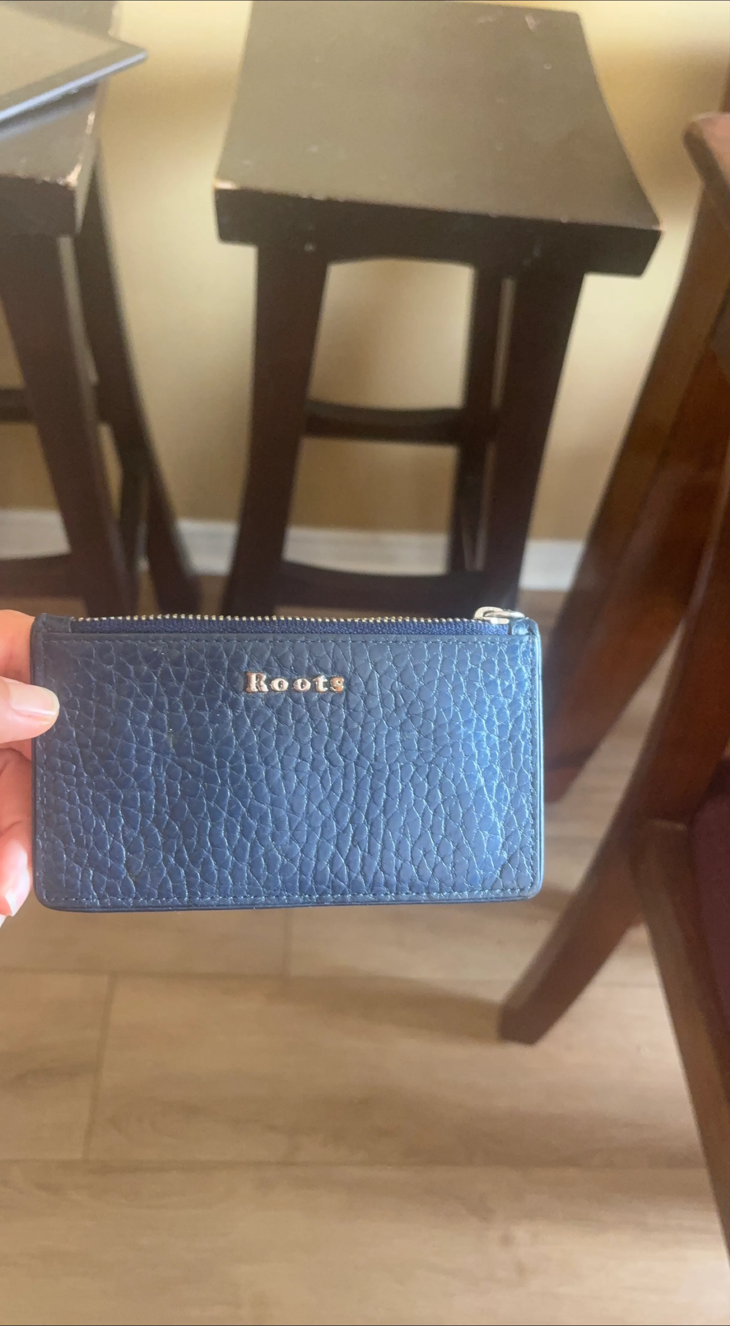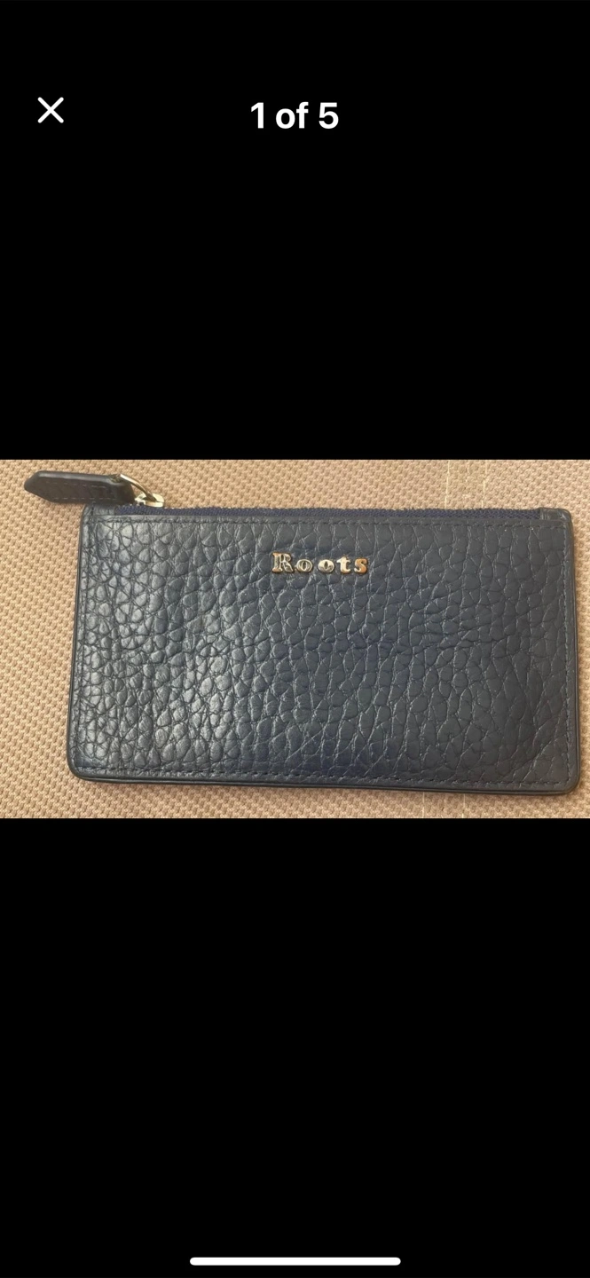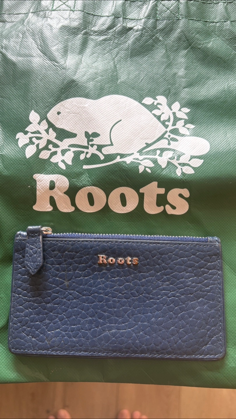Selling a cute Roots cardholder wallet in blue leather! It's in great condition and perfect for carrying your essential cards and cash. The leather has a nice texture and the Roots logo is subtly displayed