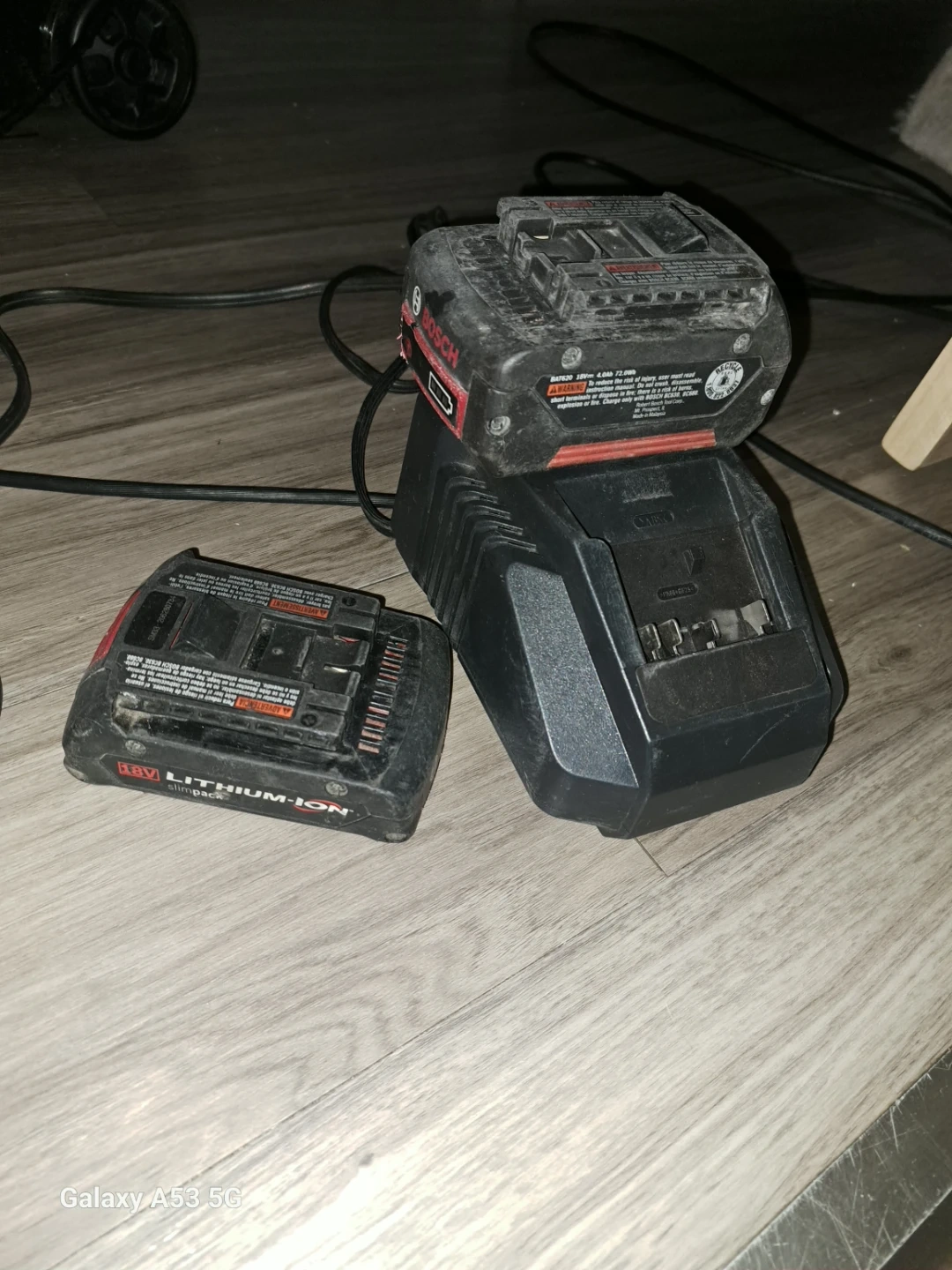 Includes a Bosch 18V 4.0Ah Lithium-Ion battery and a 18V SlimPack Lithium-Ion battery. Both are designed for power tools. The Bosch battery is 4.0 Amp hours. With charger