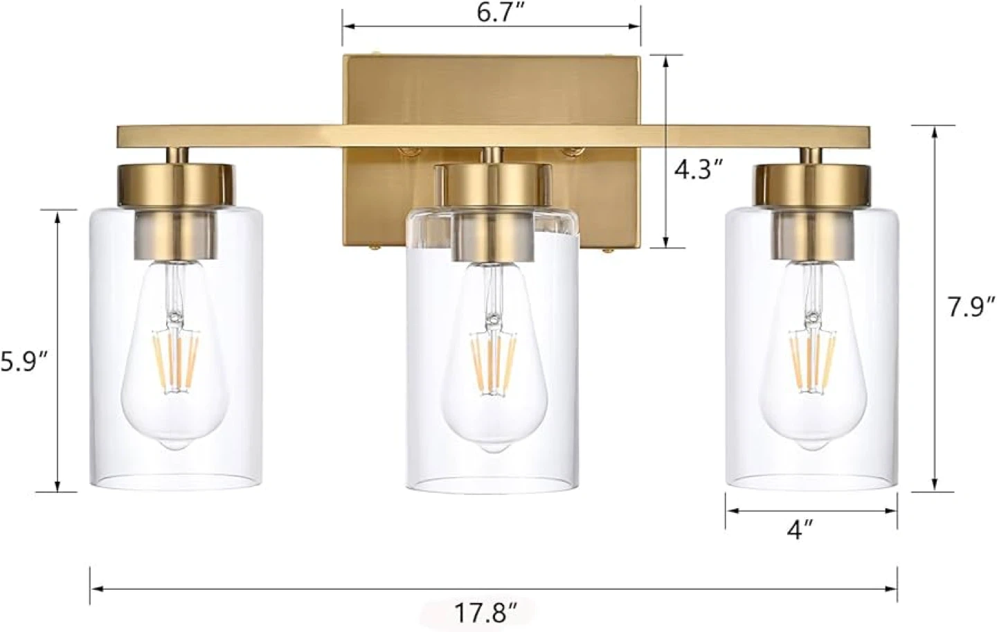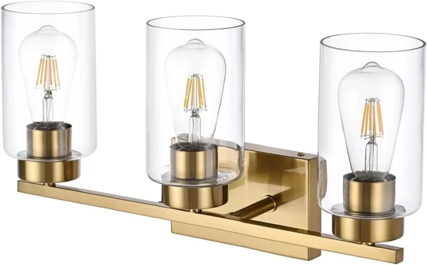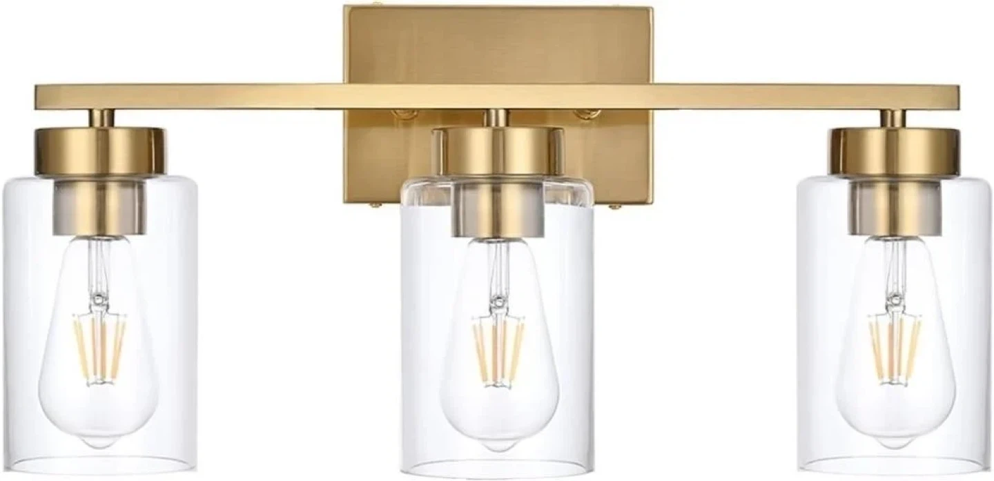 3-Light Bathroom Vanity Light, Modern Brushed Gold - BNIB