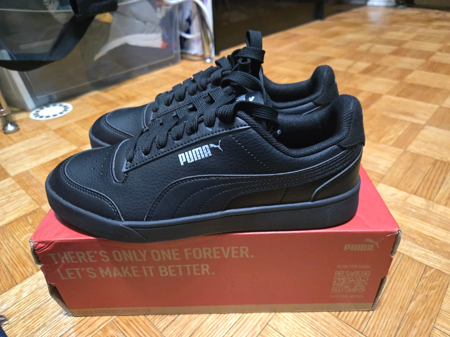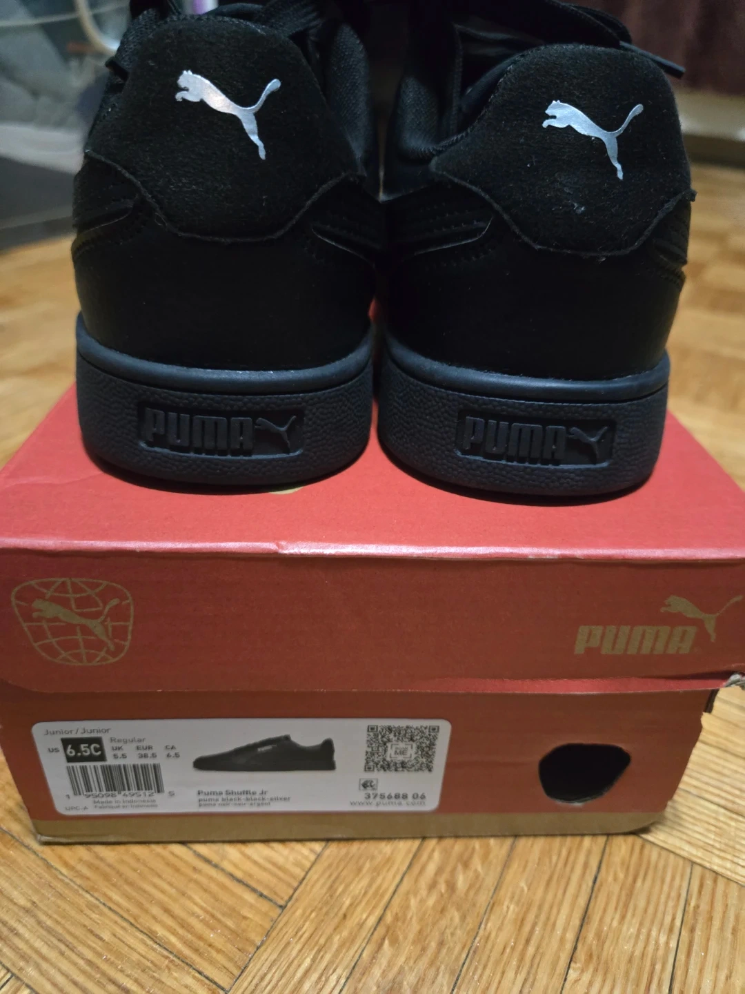Selling a pair of Puma Shuffle Jr shoes in black! These are perfect for everyday wear and have a classic Puma design.