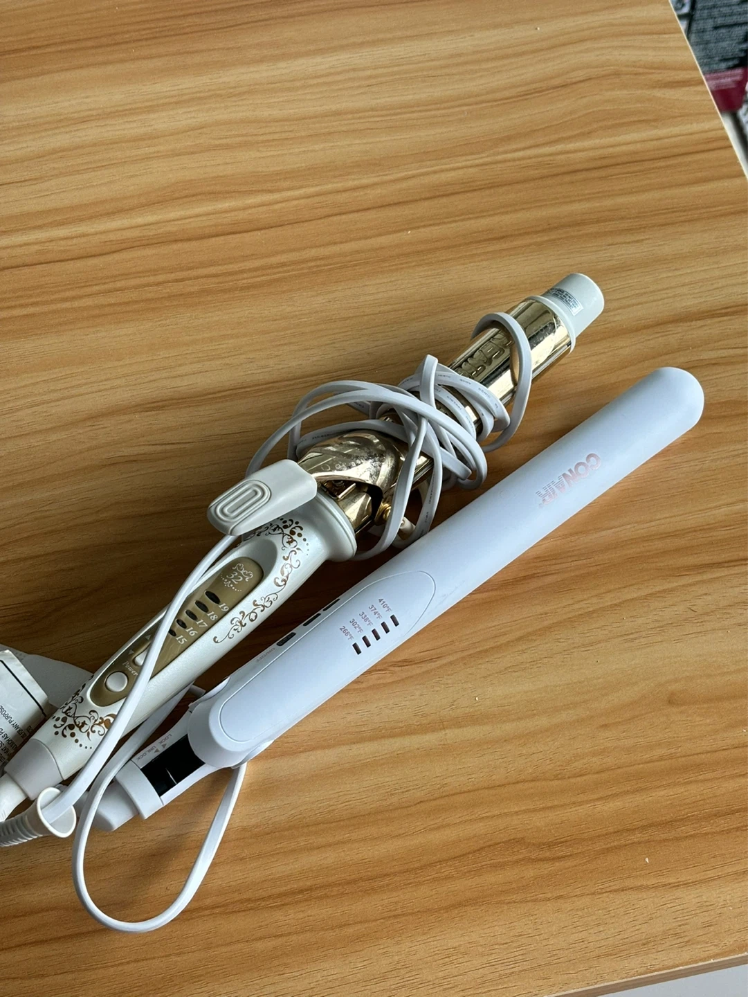 This set includes a Japanese brand curling wand with multiple heat settings and a Conair flat iron. A great duo for all your styling needs!
