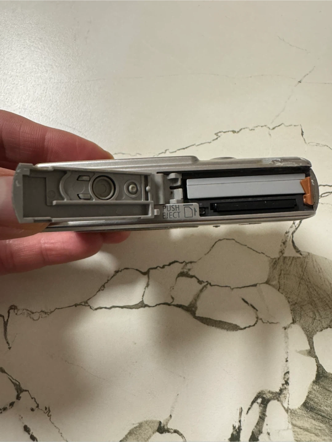 Silver Canon PowerShot SD400 Digital ELPH camera. It's a 5.0 megapixel camera with 3x optical zoom. Includes a 1GB SD card and a BATMAX NB-4L lithium-ion battery pack. Great for capturing everyday moments!