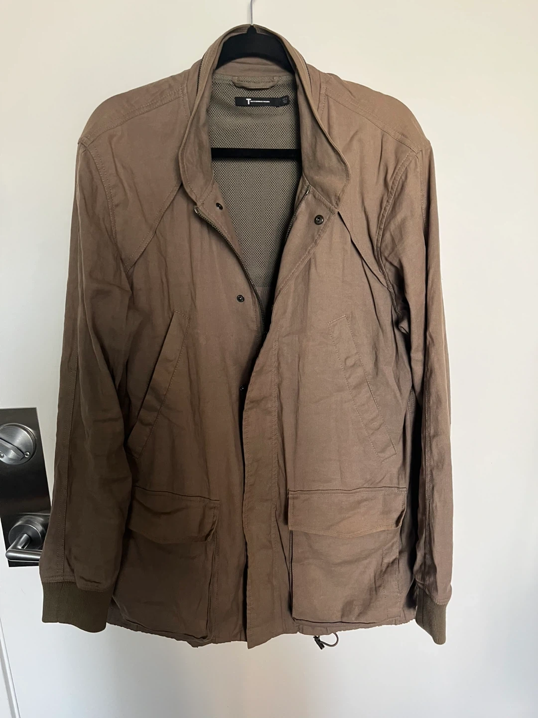 46Selling a T by Alexander Wang jacket in size medium, but fits oversized. It's a stylish and comfortable jacket, perfect for layering during transitional weather. The colour is a versatile greyish olive. It has some slight colour fading that blends well with the jacket design and style, and otherwise in great condition!