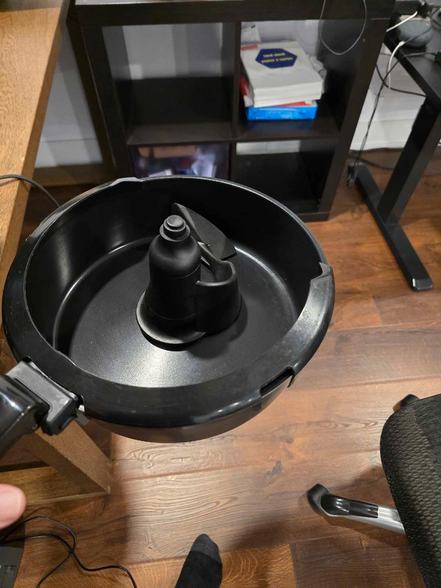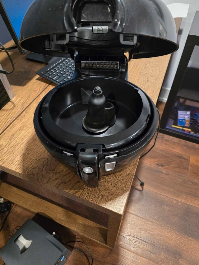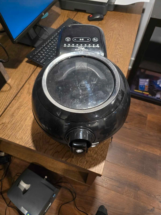 This is a T-Fal Air Fryer, perfect for cooking your favourite foods with less oil! This item is used, but still works great for whipping up tasty meals. It features a digital interface for easy control and a non-stick basket for simple use.