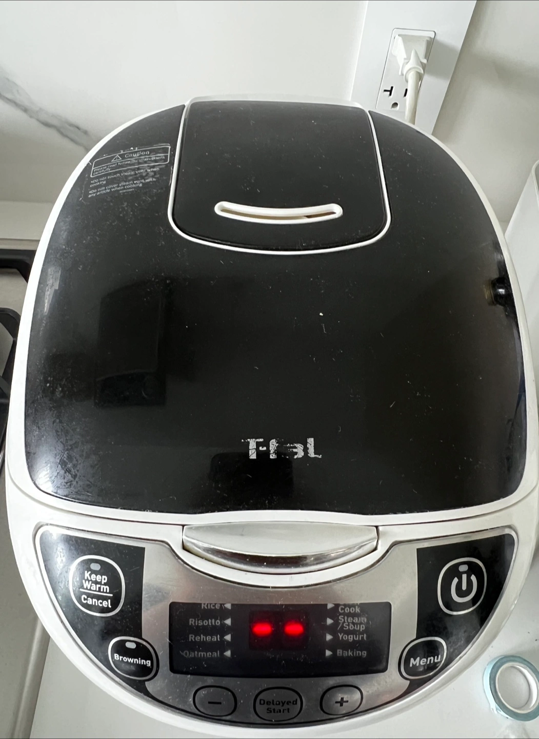 Selling a T-fal rice cooker in great working condition •Easy one-touch cooking with automatic keep-warm function •Non-stick inner pot, easy to clean •Includes lid, inner pot, and power cord Pick up only!!!