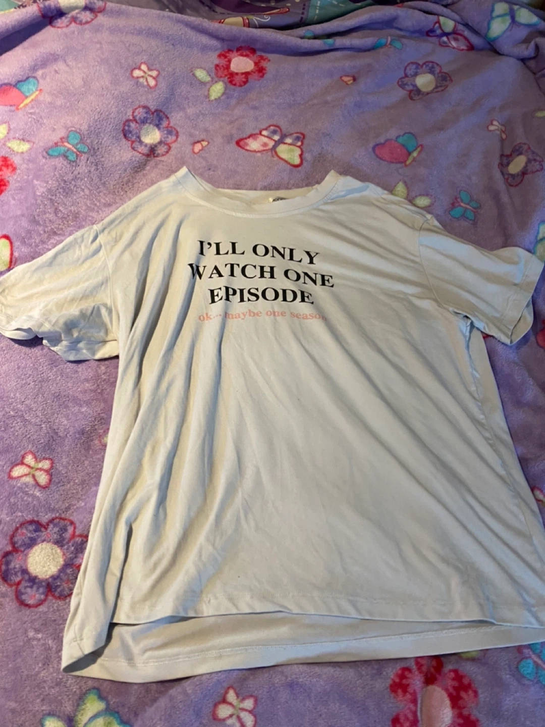 Selling a t-shirt with the text "I'll only watch one episode ok-maybe one season" printed on it great sleep shirt
