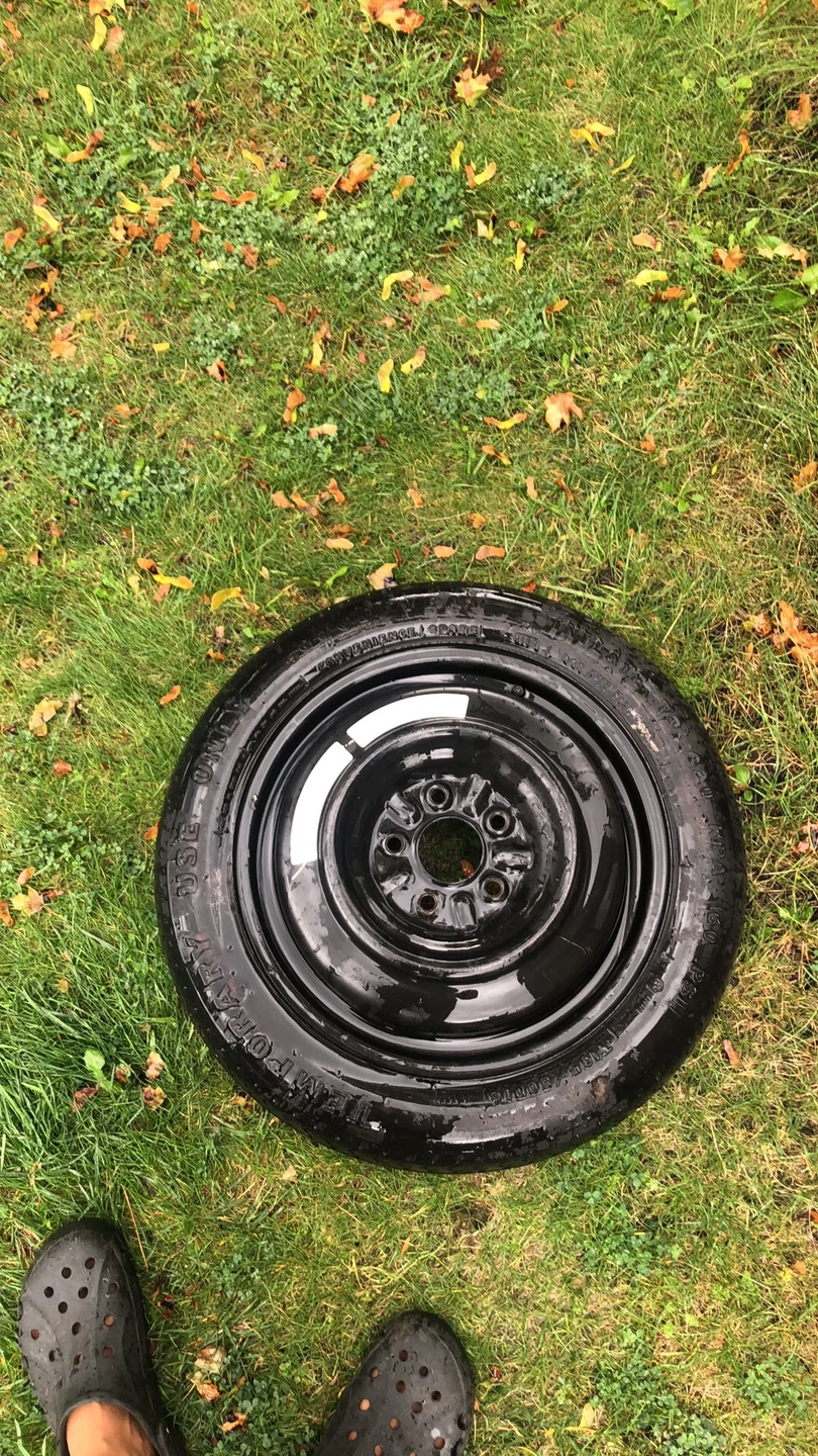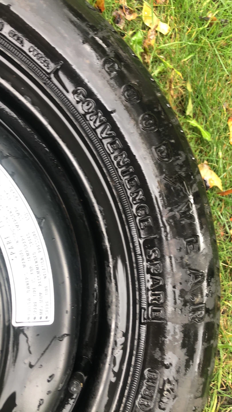 60Selling a T135/80D16 convenience spare tire. It's black and appears to be in good condition.