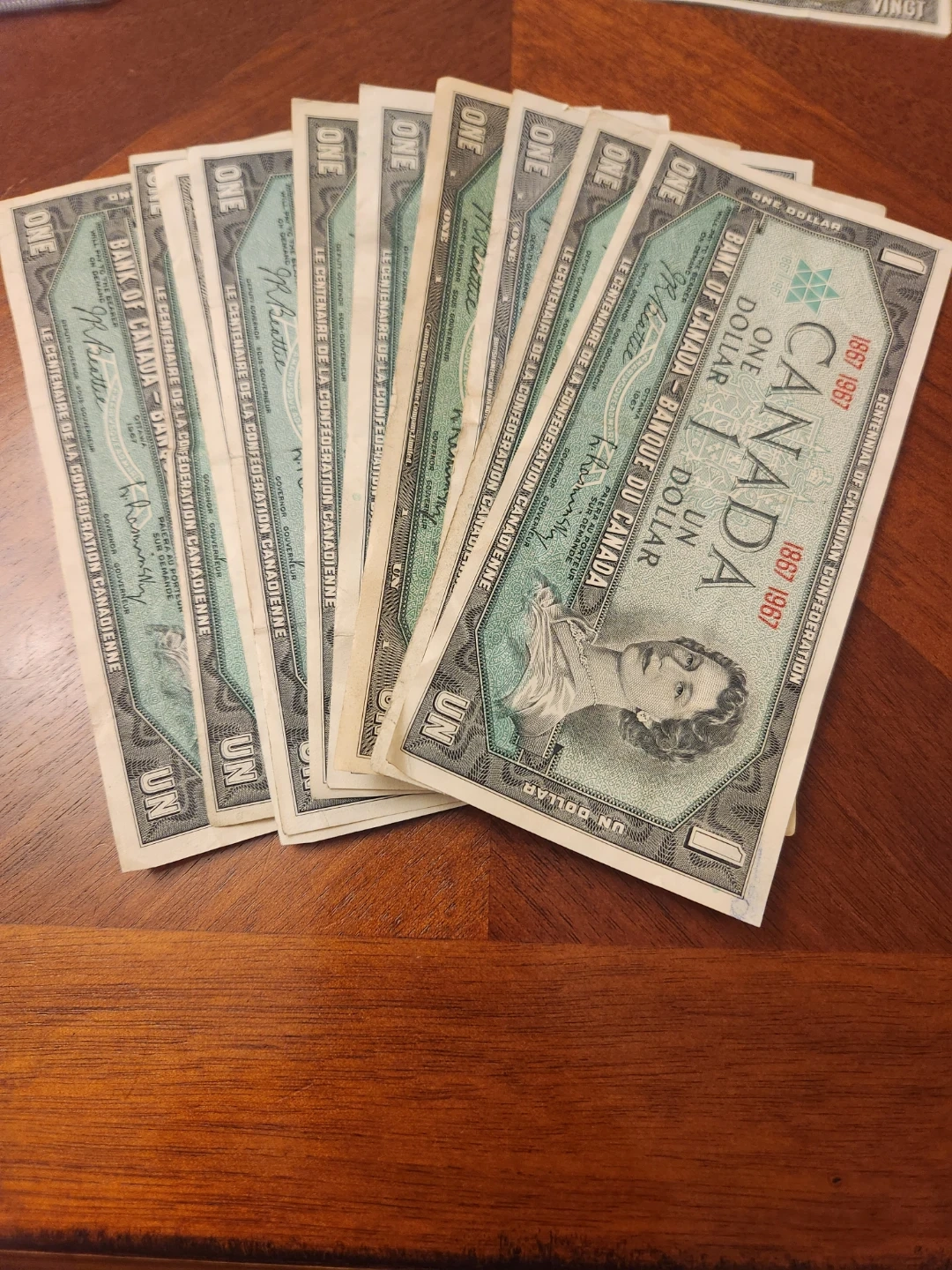 Centennial of Canadian Confederation one dollar banknotes. Features Queen Elizabeth II on the front and Parliament Hill on the back. Dates visible are 1967. Selling Separately @ $7 to $10 Depending on Condition, Viewing in Person by Appointment, Pick up in Brampton L6y4y5, Queen and Chinguacousy rd, Shipping Available on Prepaid plus Canada post. We will choose the Best for you!