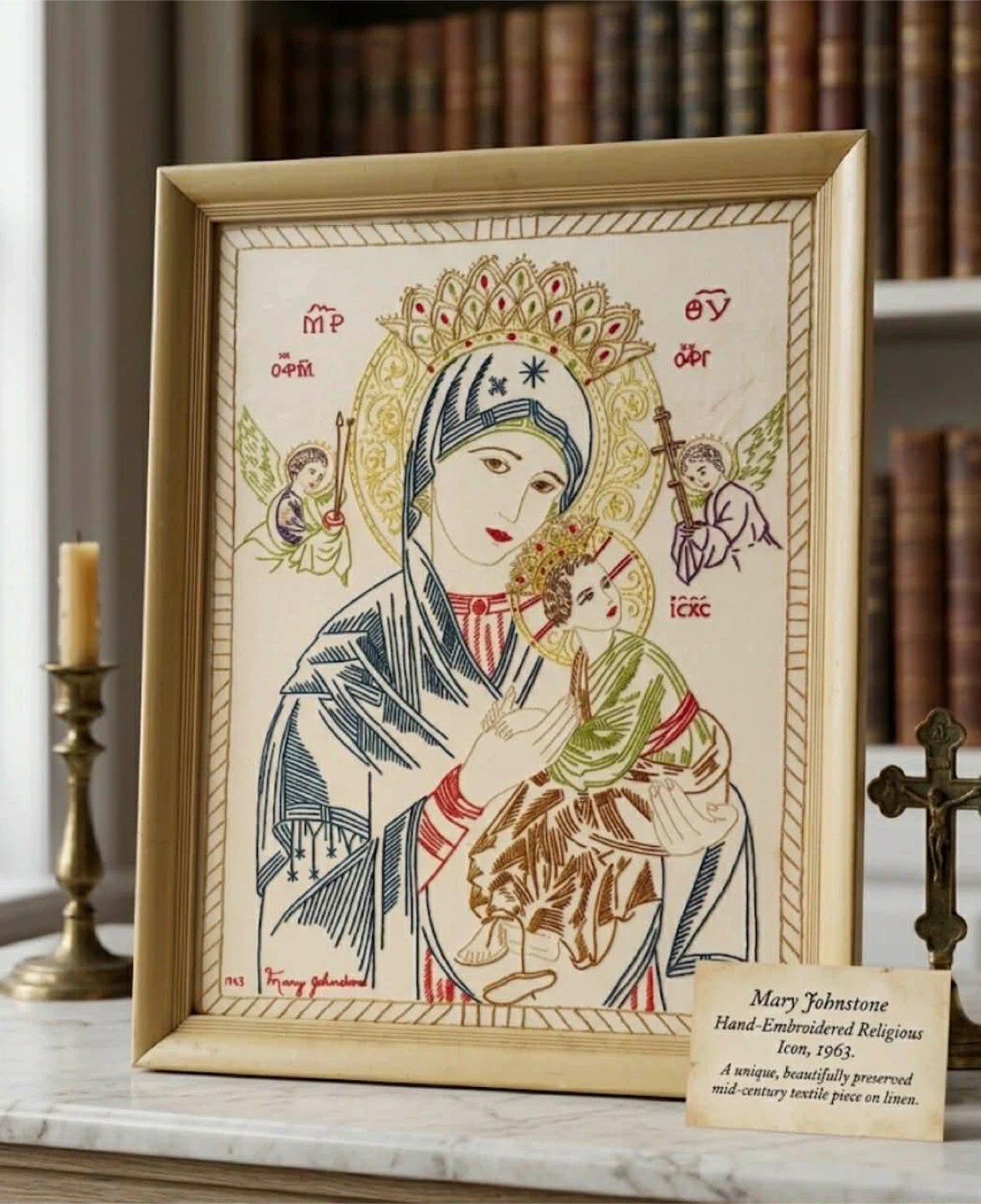 Vintage 1963 Hand-Embroidered Icon "Our Lady of Perpetual Help"