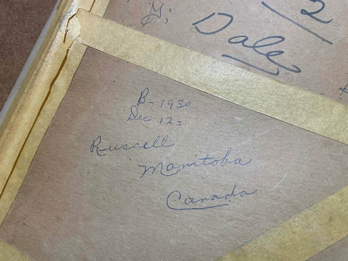 Framed with interesting writing in pencil on the back mentioning both Russell and Winnipeg Manitoba.