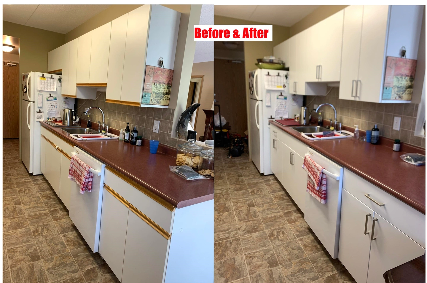 In just a couple hours, you can transform outdated, worn cabinets into a stunning, cohesive design.