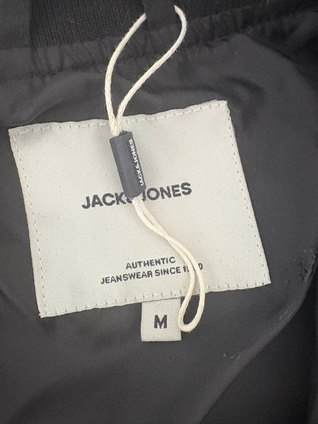Jack & Jones bomber jacket in black. Size medium. Features zip closure and zippered pockets.