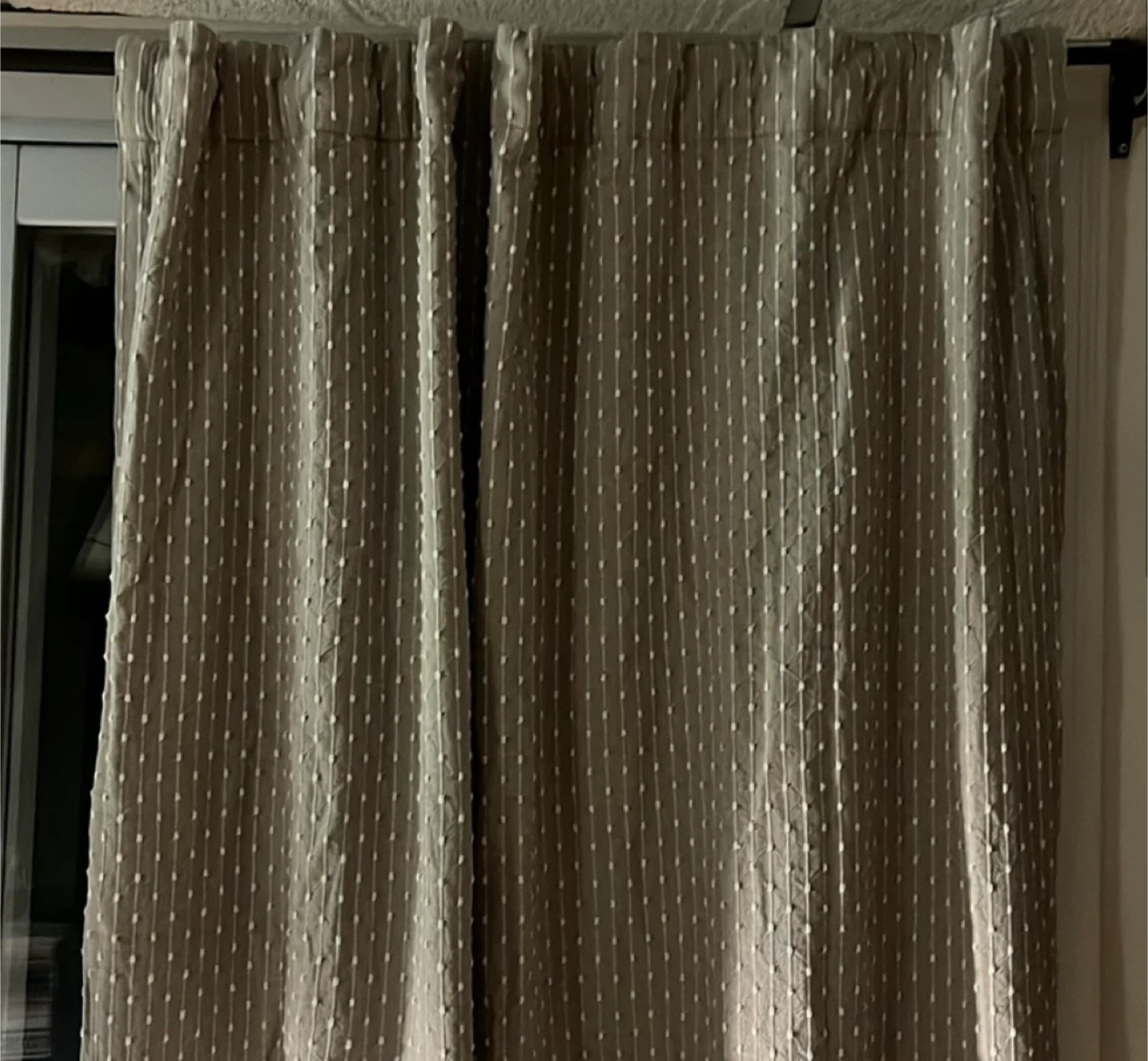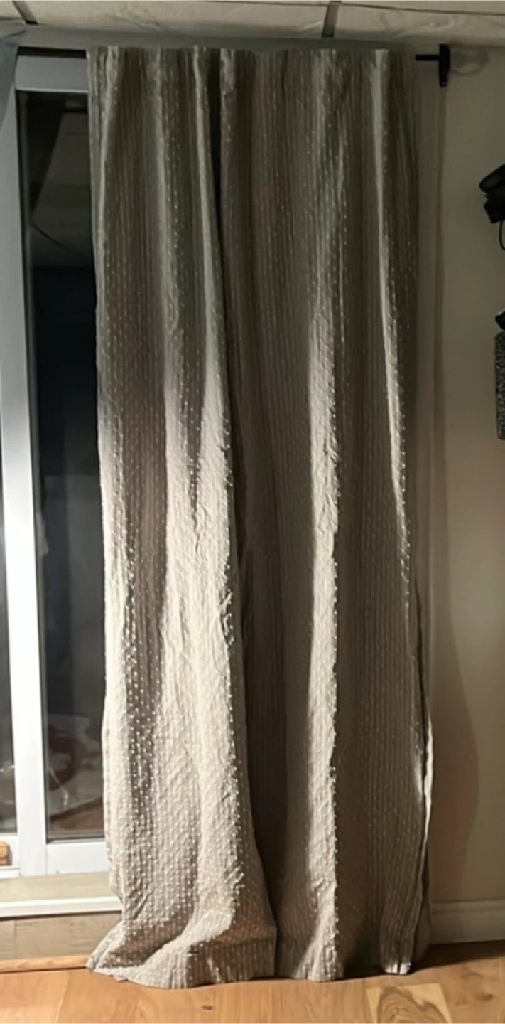 I'm selling a set of Bee & Willow Home curtains. They are a neutral colour with a subtle dotted pattern. They would look great in any room!