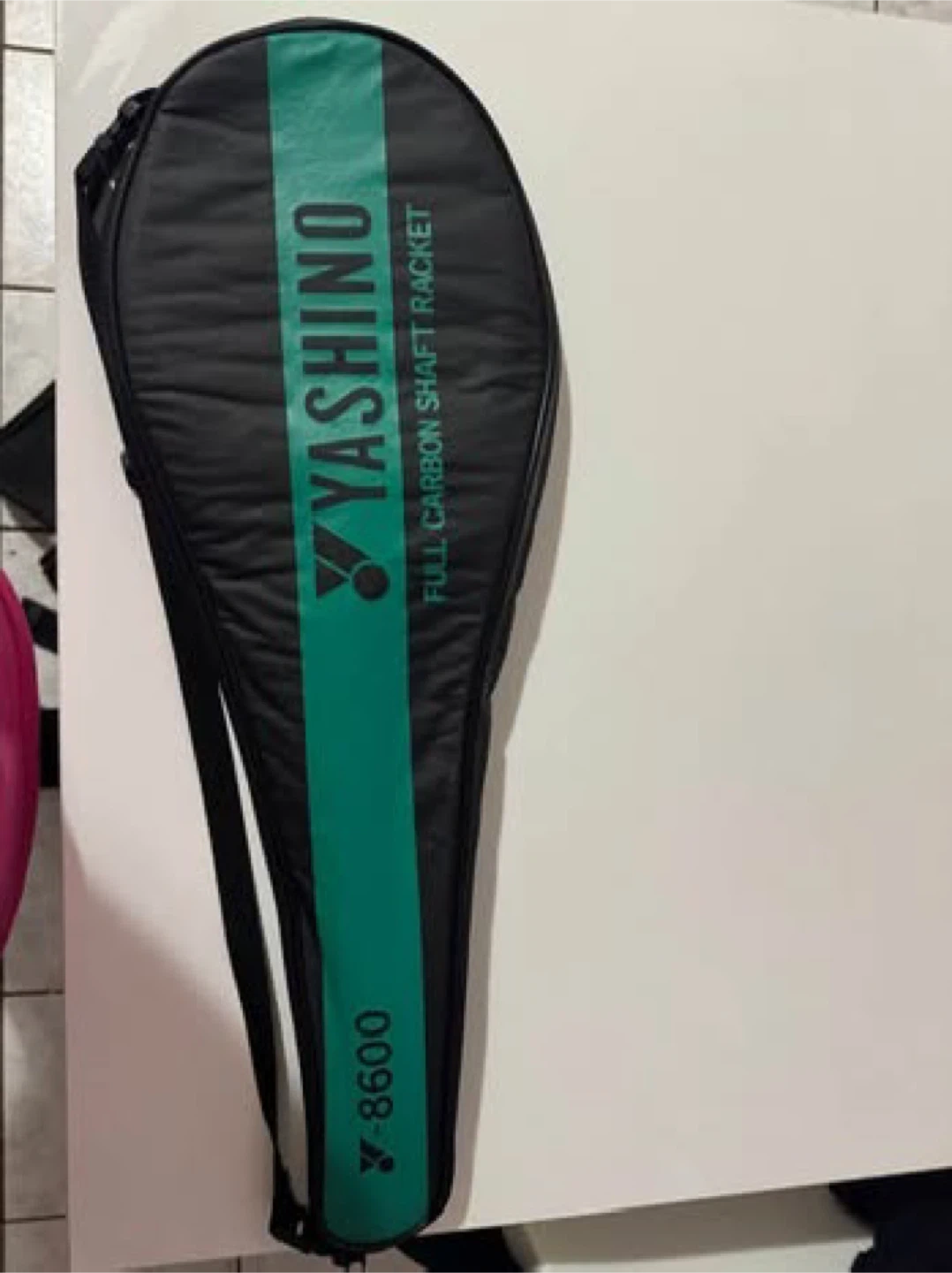 YASHINO 8600 full carbon shaft badminton racket. Comes with a protective carrying case. Great for badminton players of all levels!