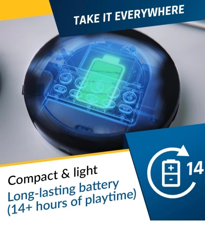 This KLIM Nomad is a portable CD player with FM/AM radio, TF card reader, and Bluetooth connectivity. It includes a headset and offers long-lasting battery life. Perfect for use in cars!