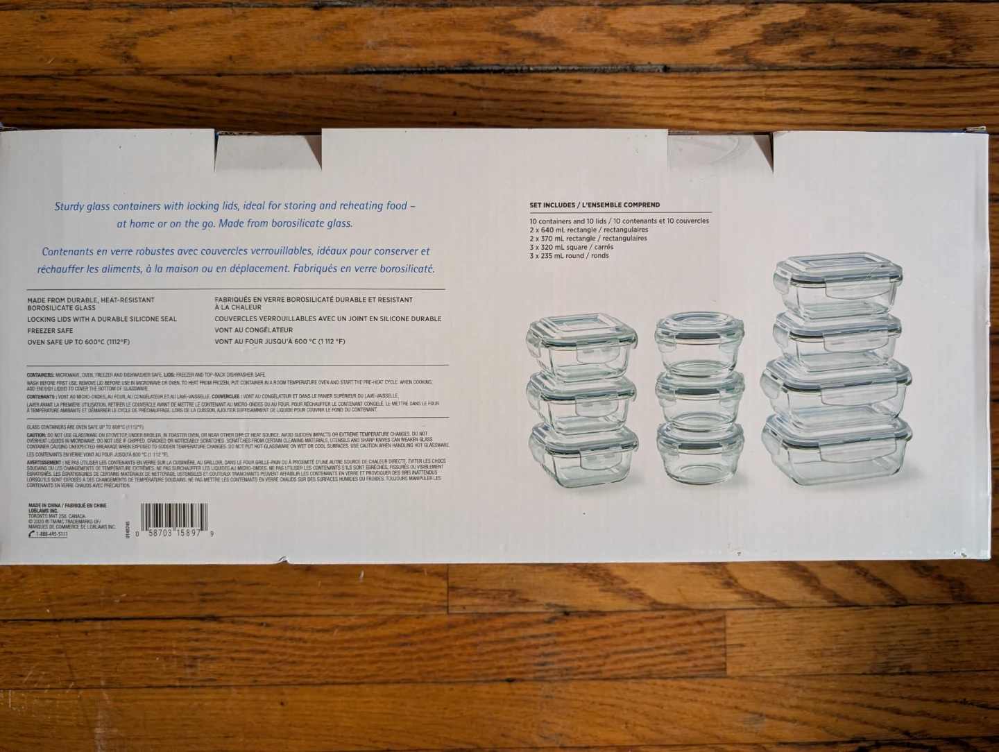 Sturdy glass containers with locking lids, ideal for storing and reheating food at home or on the go. Made from durable, heat-resistant borosilicate glass. Containers are microwave, oven, dishwasher, and freezer safe.