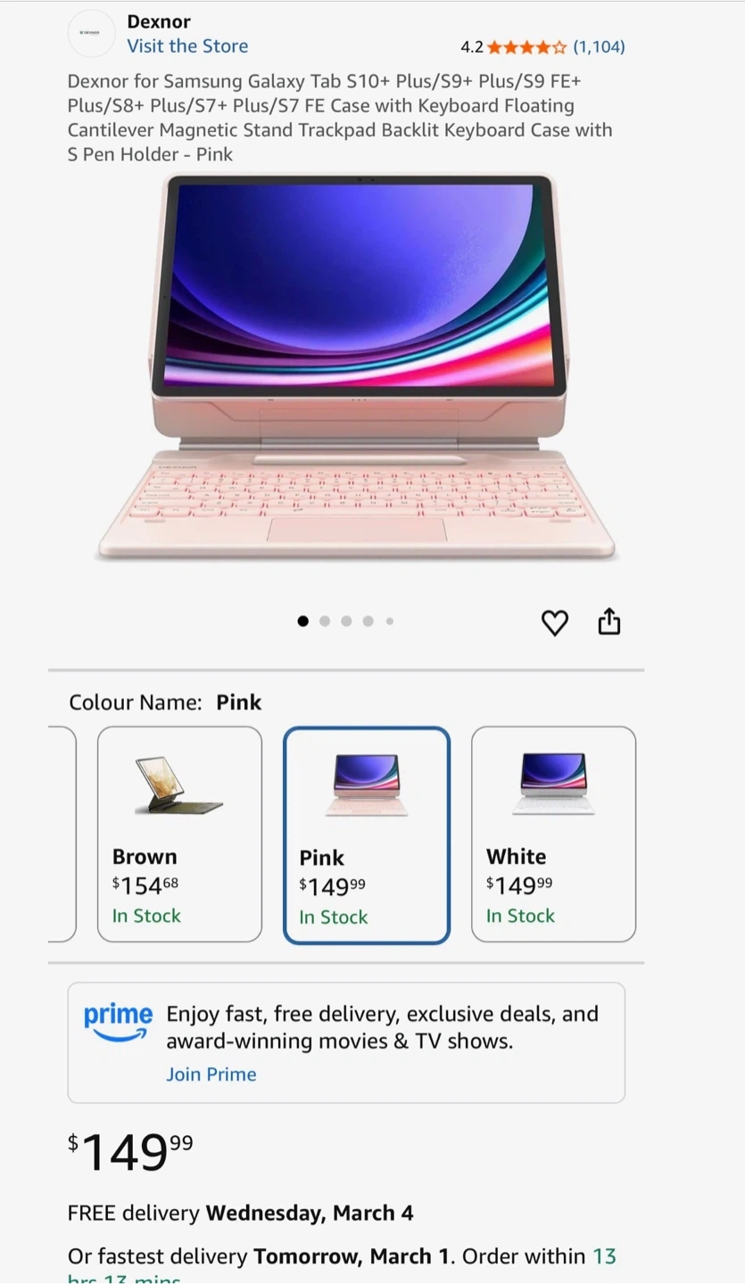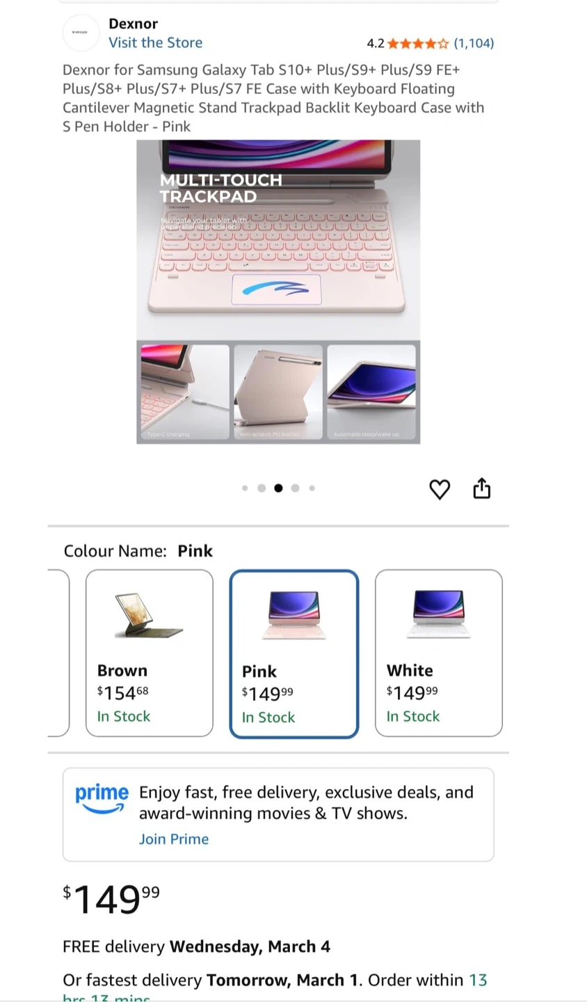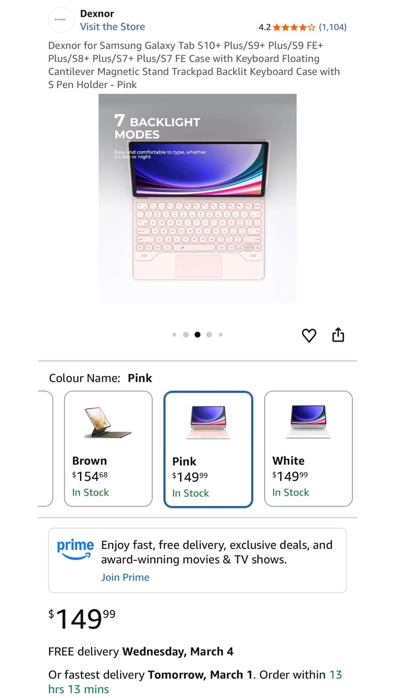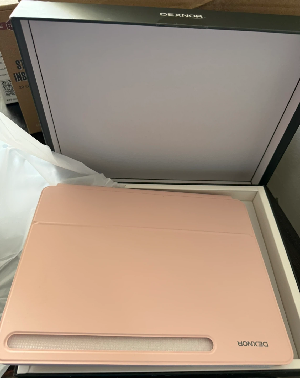 This DEXNOR keyboard case transforms your tablet into a laptop. It features a magnetic floating cantilever design and a precise multi-touch trackpad. The case also includes 7 solid color backlit keys and a built-in magnetic stylus holder. It's designed for extended use with over 1500 hours of standby time.