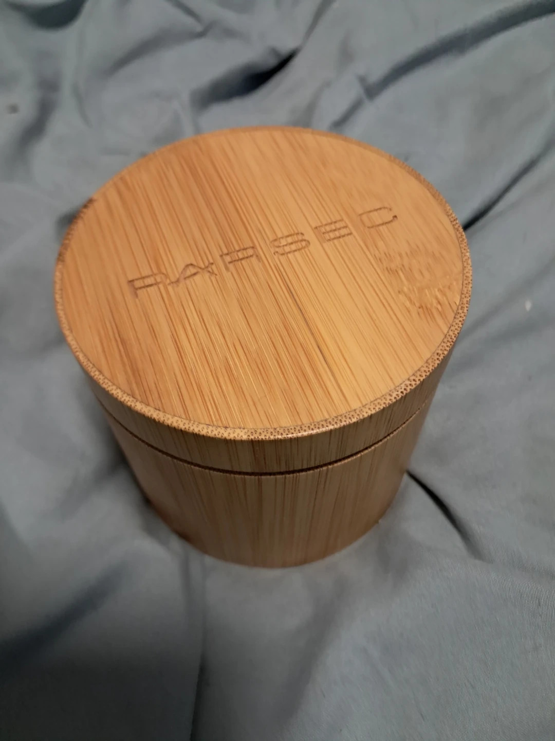 This PARSEC watch features a natural bamboo casing and band. It comes with extra links and pins for adjustment. The watch face has a clean, minimalist design.