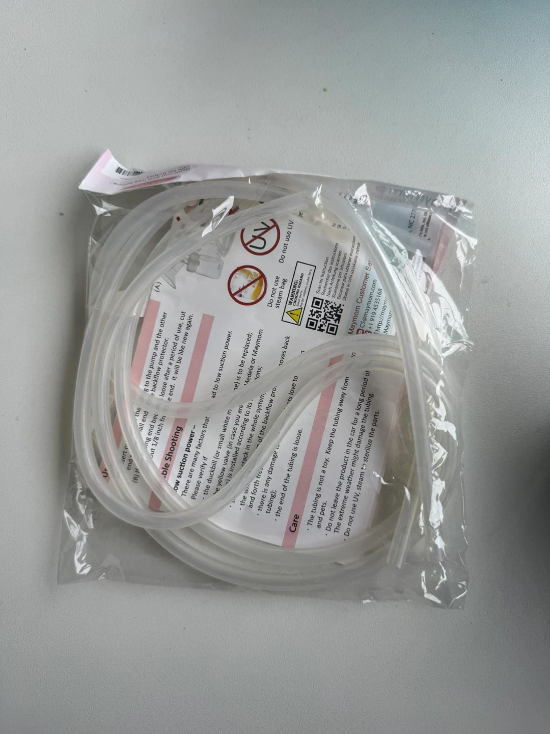 This is a Spectra S1 Plus double electric breast pump. It includes the pump, tubing, bottles, flanges, and Maymom silicone membranes and replacement tubing. All components are clean and ready for use.