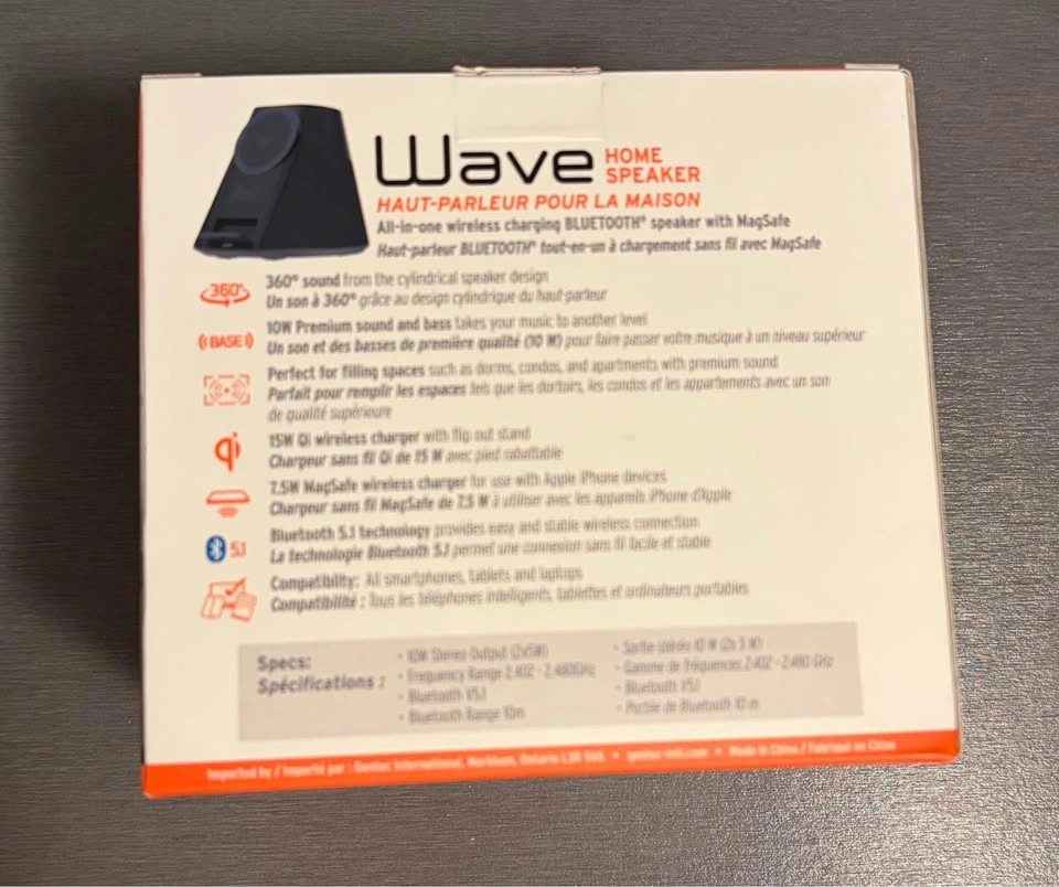 Selling an iQ Wave Bluetooth Home Speaker with a built-in wireless charging stand, perfect for your desk or nightstand. This is an all-in-one device with 360° Bluetooth speaker for clear, room-filling sound, and a wireless charging stand. It supports MagSafe 7.5W for iPhone and Qi 15W for other compatible devices. Features Bluetooth 5.1 for a fast, stable connection. Great for bedrooms, offices, dorms, or living rooms. Play music while charging your phone – no extra cables needed! Local pickup preferred. Cash or e-transfer accepted.