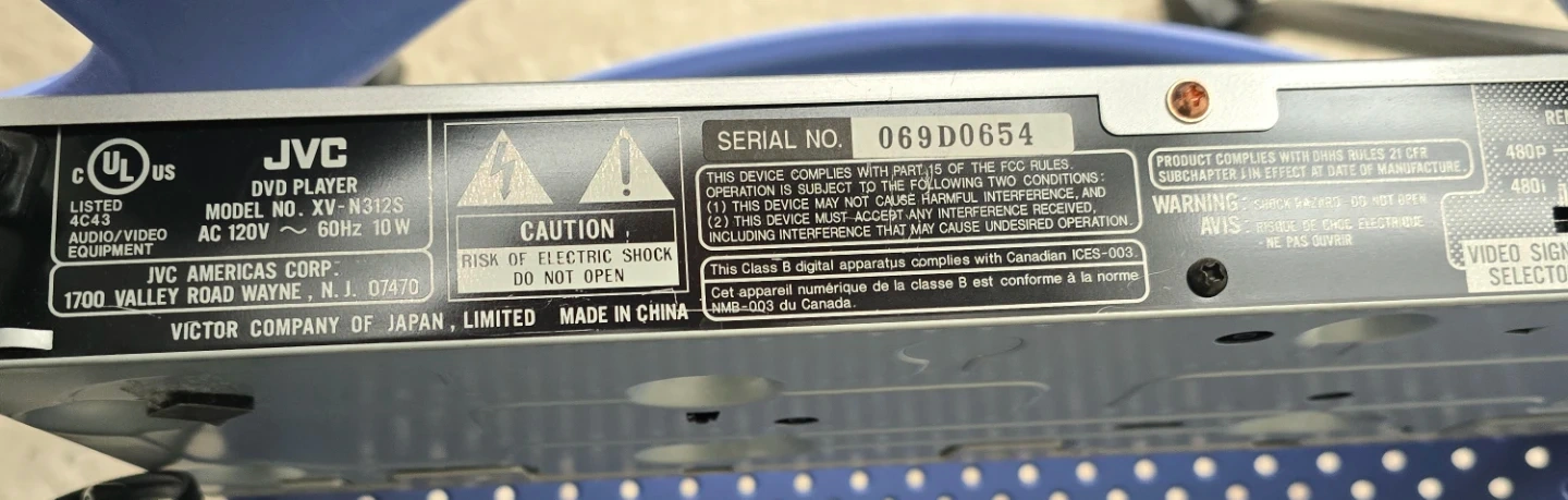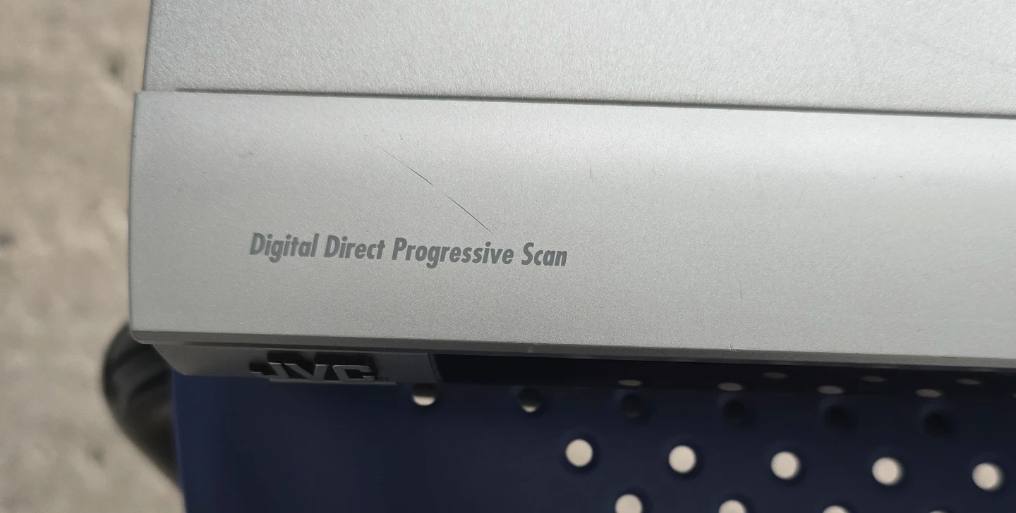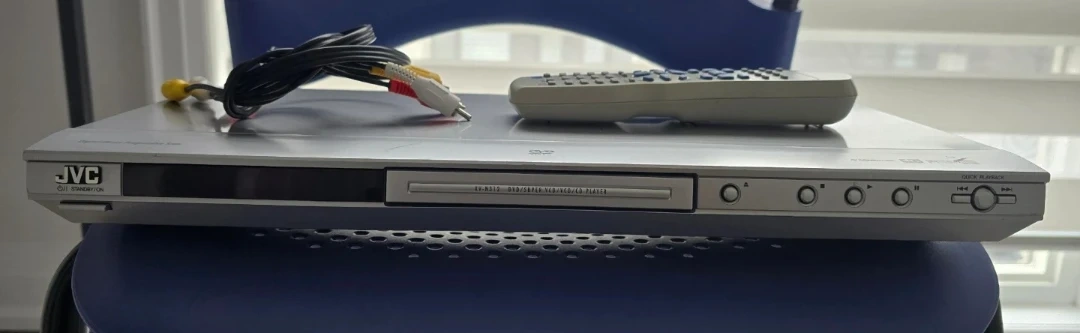 This JVC DVD player offers Progressive Scan for a crisp picture. It supports DTS Digital Surround and Dolby Digital. Includes RCA composite cables and a remote control.