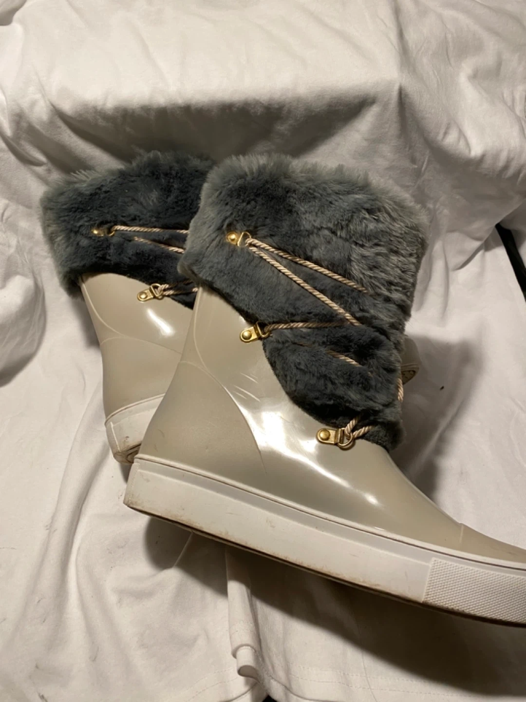 Cute pair of boots with faux fur trim! They are a size 38. Perfect for adding a bit of flair to your winter outfits